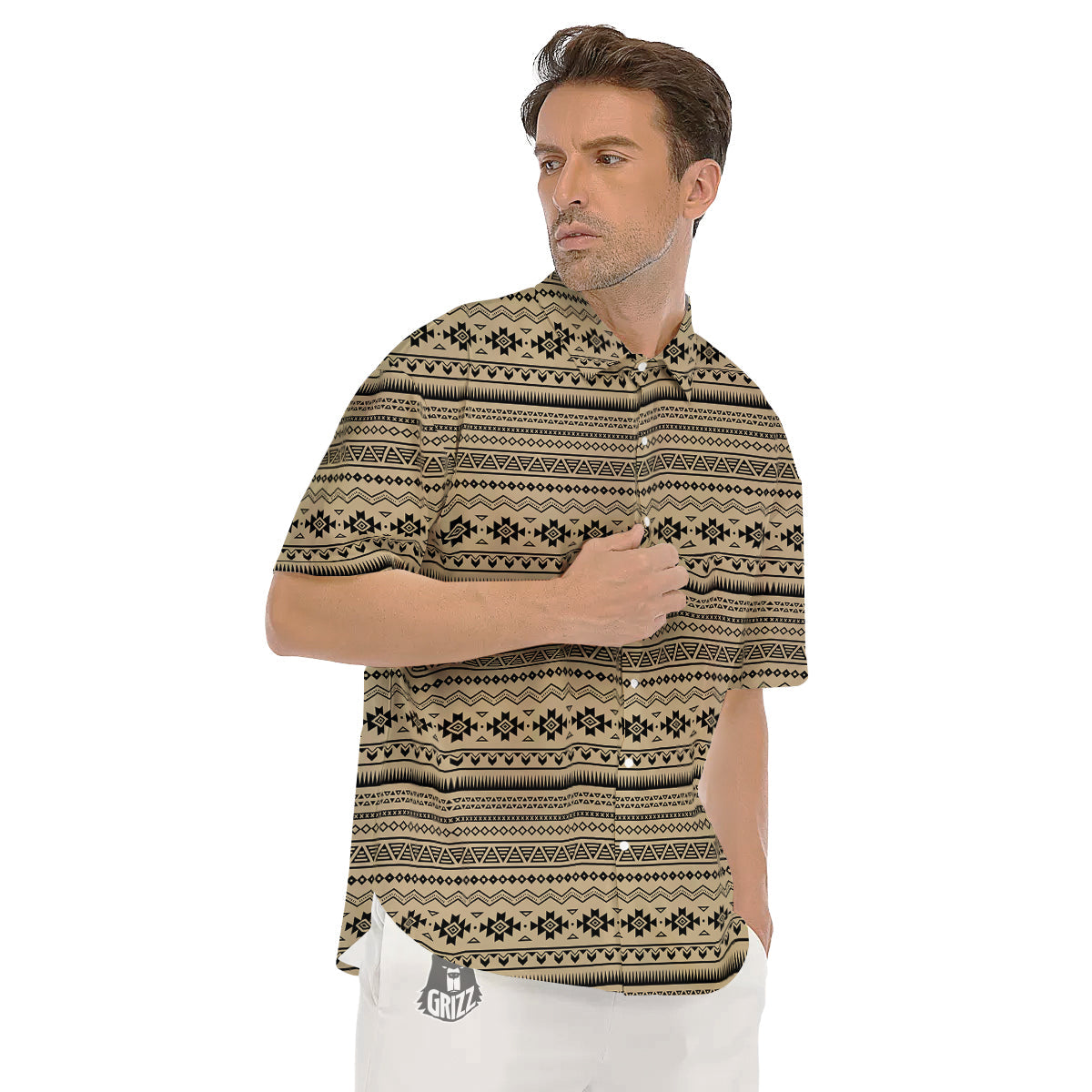 Aztec Beige And Black Print Pattern Men's Short Sleeve Shirts