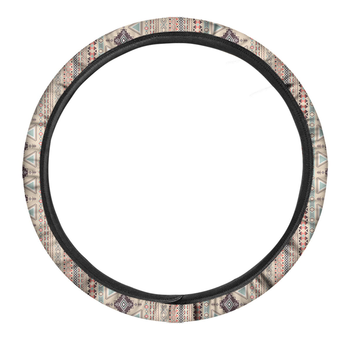 Aztec Beige Print Pattern Car Steering Wheel Cover