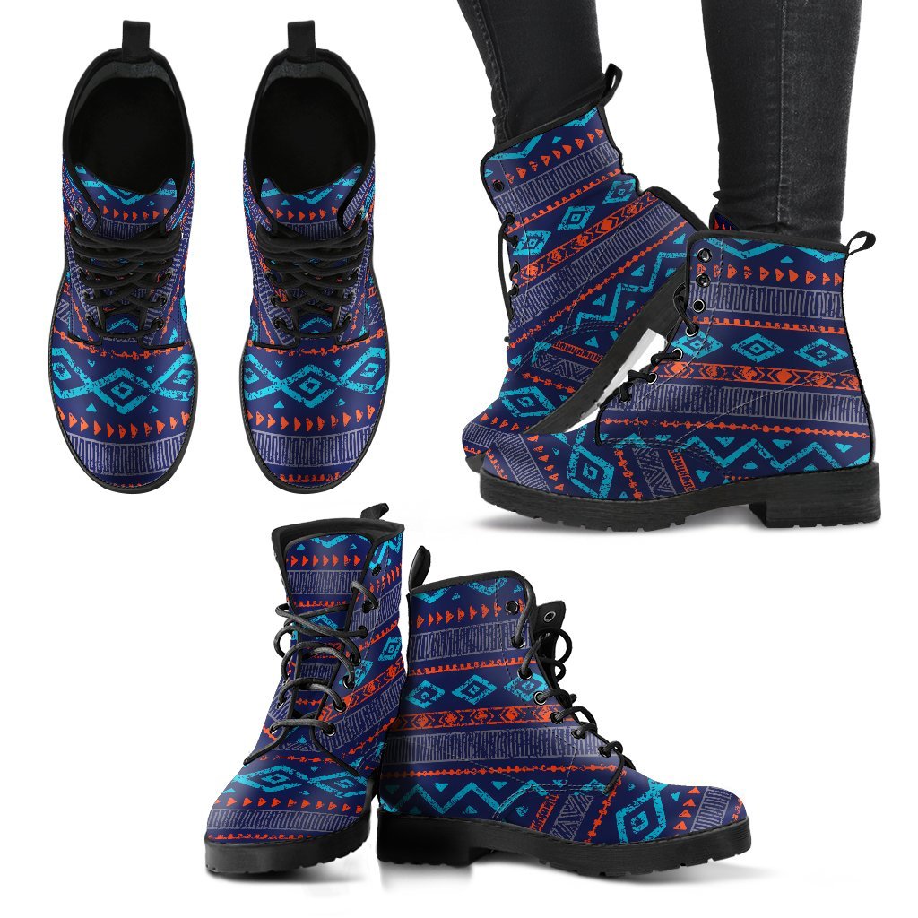 Looking for a unique boots ? Check out our Aztec Blue Woman's Boots at Grizzshopping. Our boots are handcrafted to the highest quality standards that custom made for you Features vegan-friendly leather with a double-sided print and rounded toe construction.