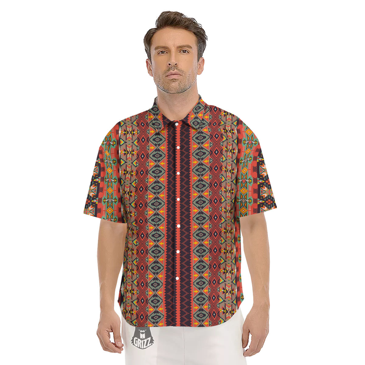 Aztec Native Tribal Print Pattern Men's Short Sleeve Shirts