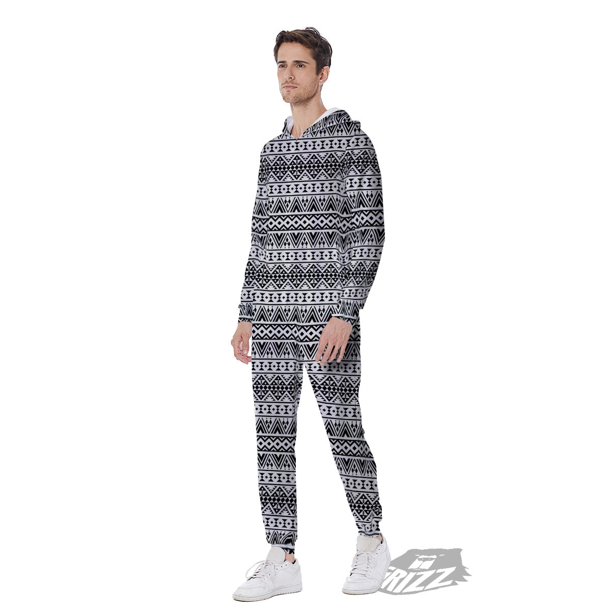 Aztec Texture White And Black Print Pattern Men's Jumpsuit
