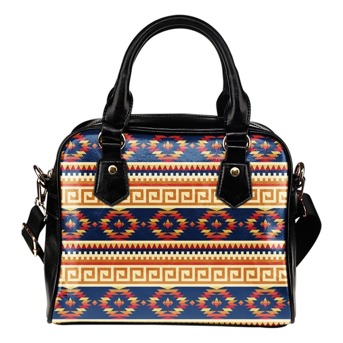 Aztec Tribal Indians Navajo Native American Print Leather Shoulder Handbag