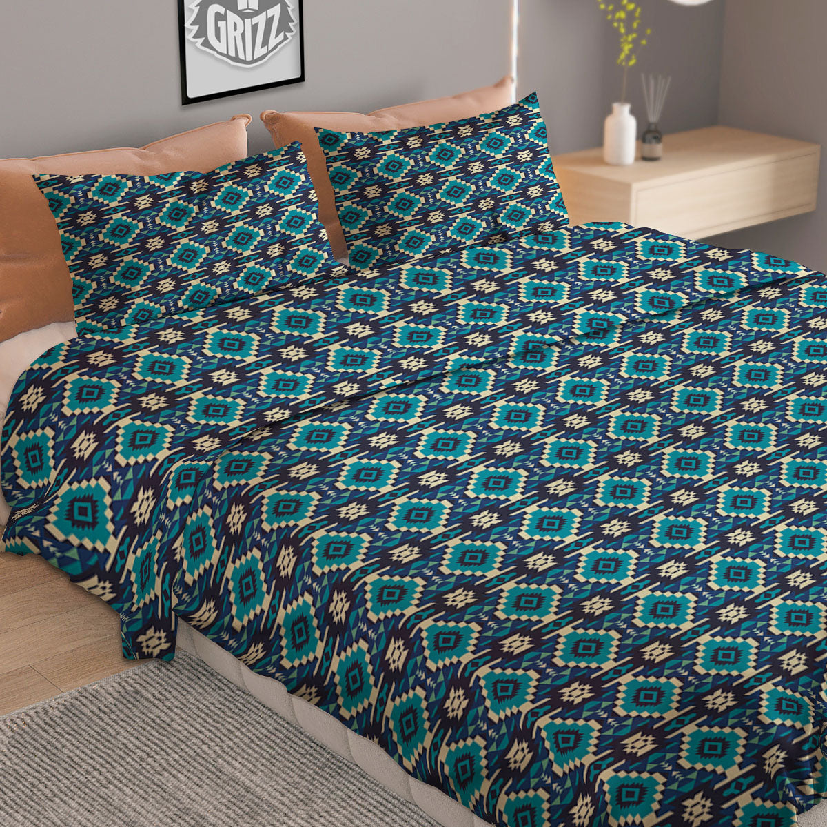 Aztec Turquoise And Blue Print Pattern Duvet Cover Bedding Set