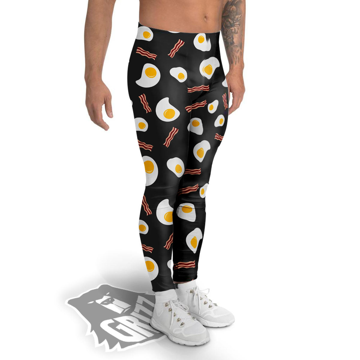 Bacon And Black Fried Egg Print Pattern Men's Leggings