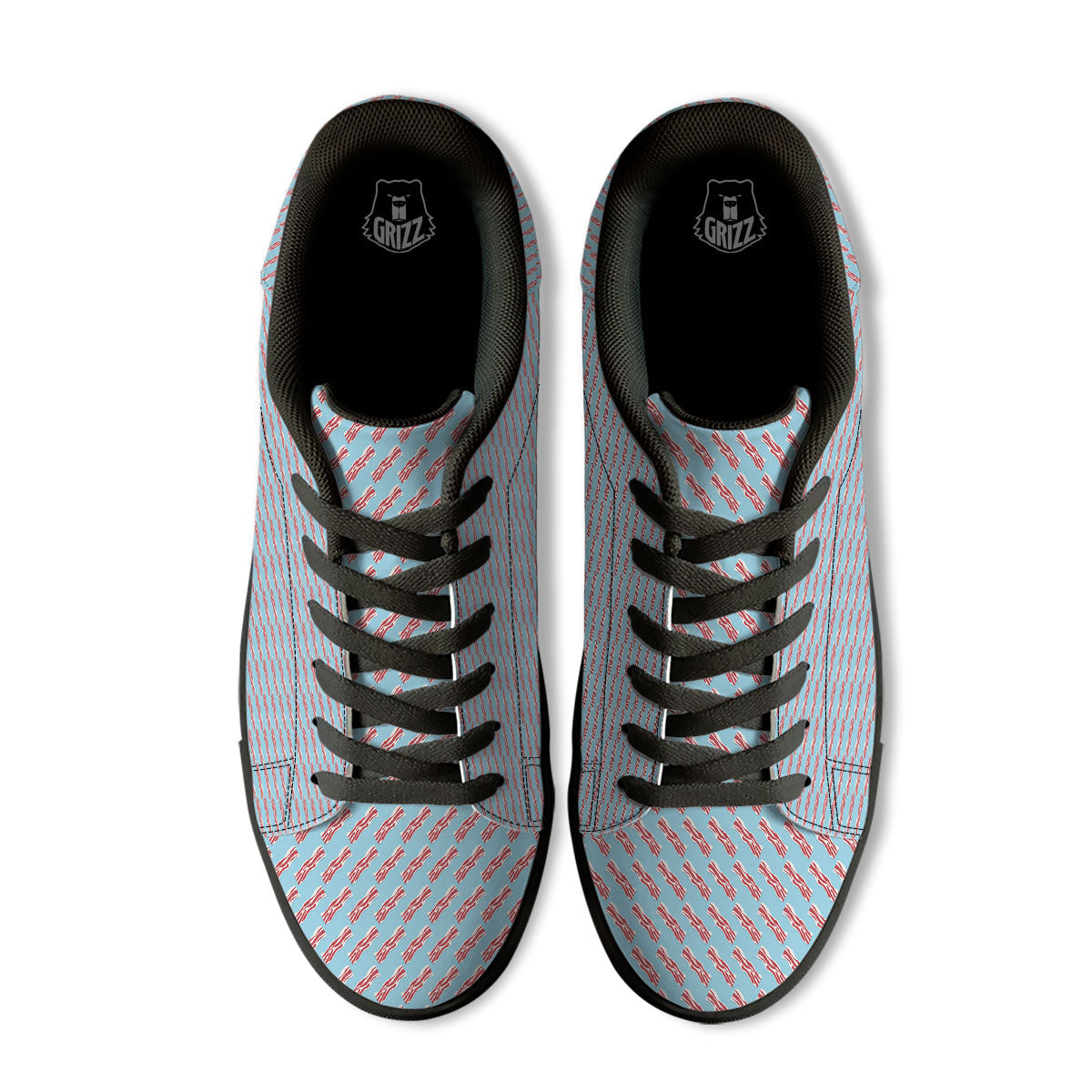 Bacon Blue Print Pattern Black Low Top Sneakers