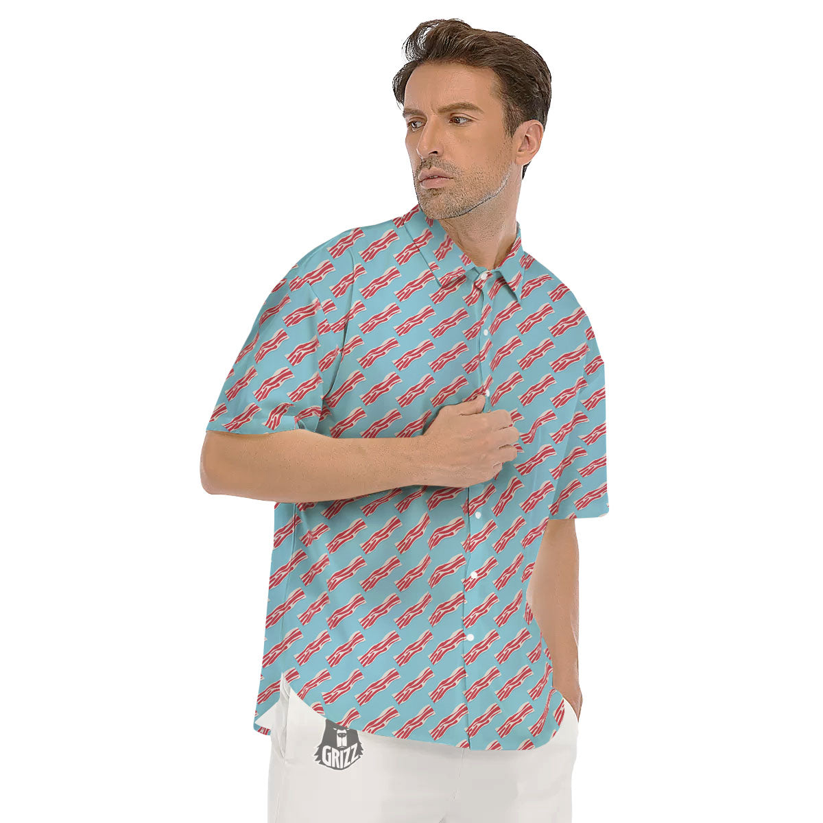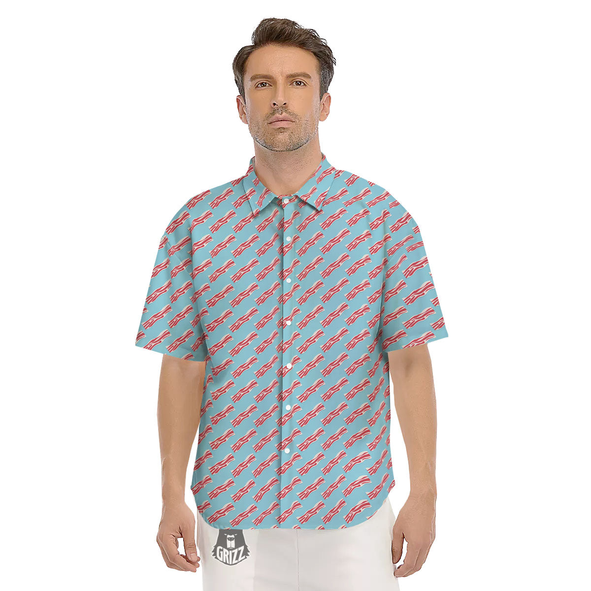 Bacon Blue Print Pattern Men's Short Sleeve Shirts