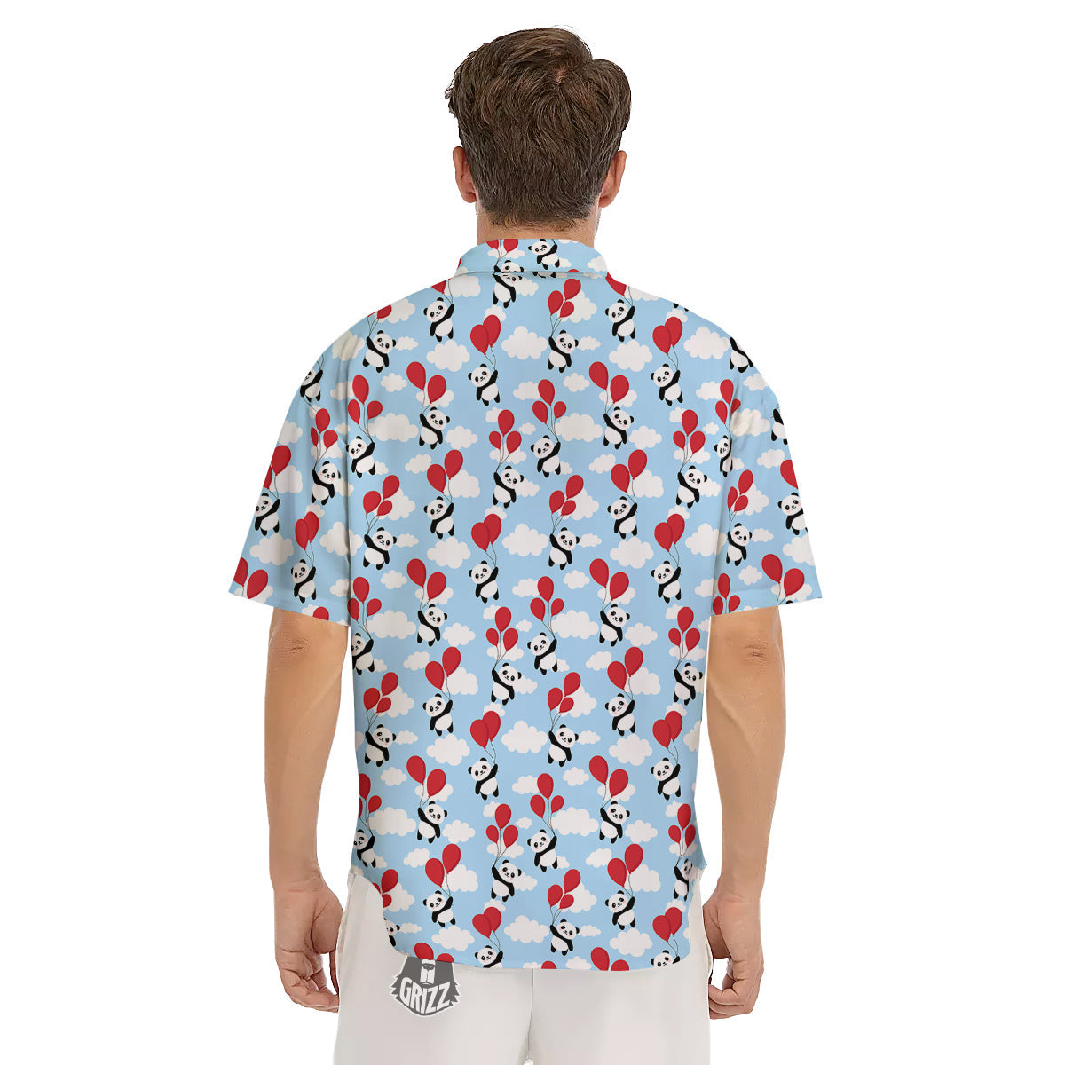 Balloon And Cute Panda Print Pattern Men's Short Sleeve Shirts