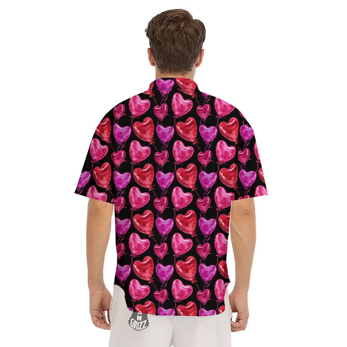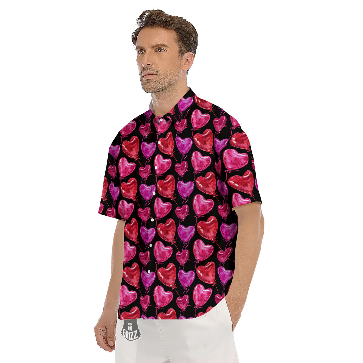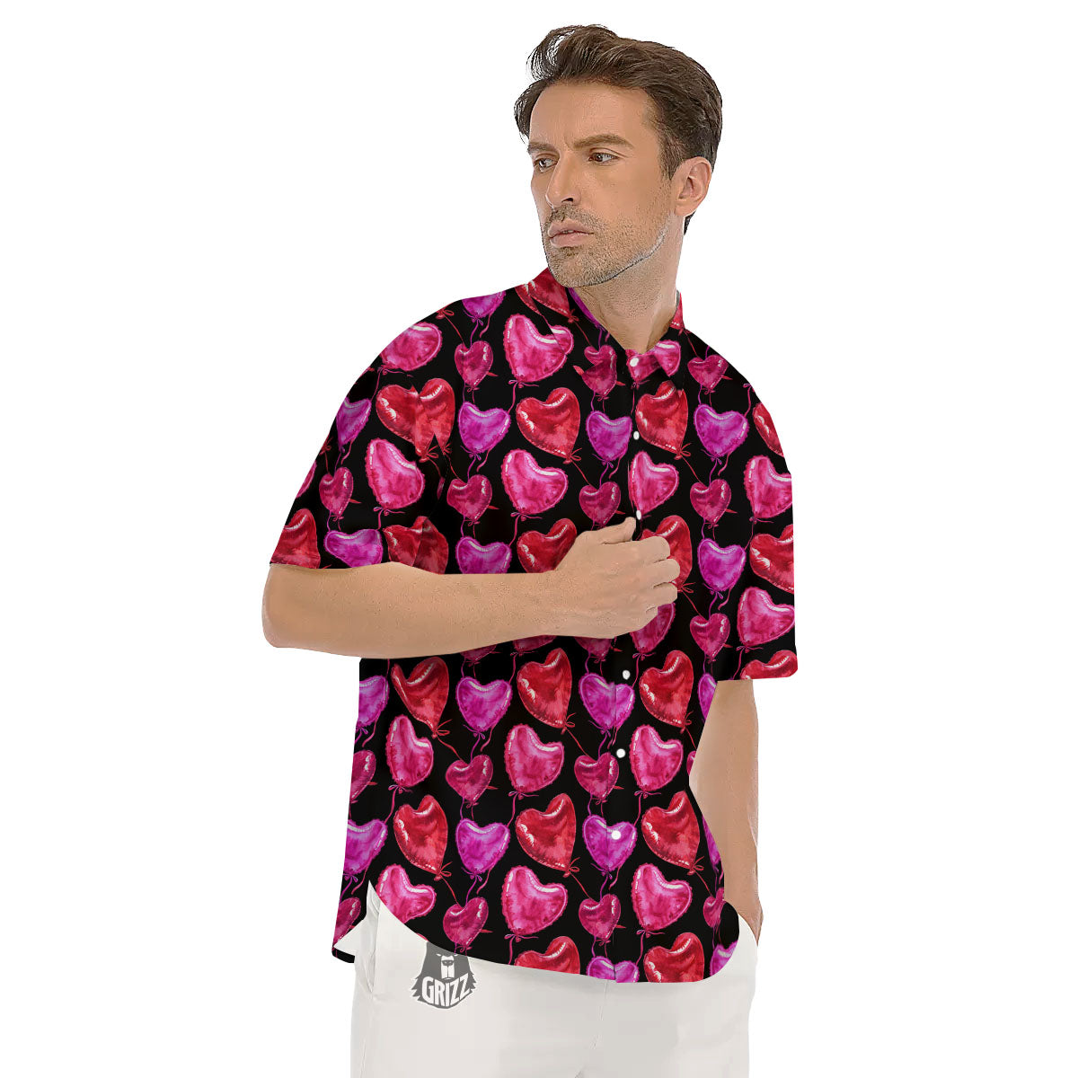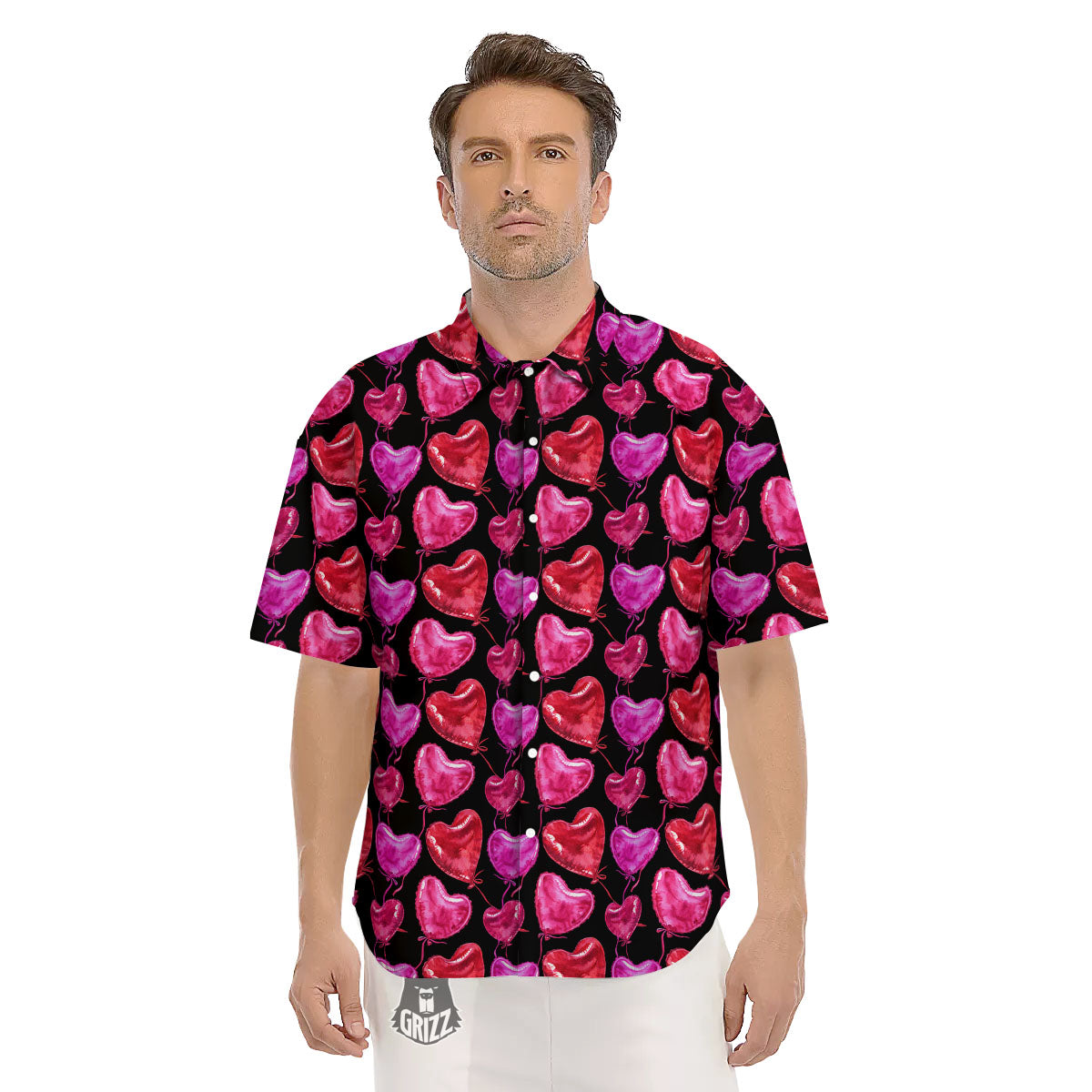 Balloon Red Heart Print Pattern Men's Short Sleeve Shirts