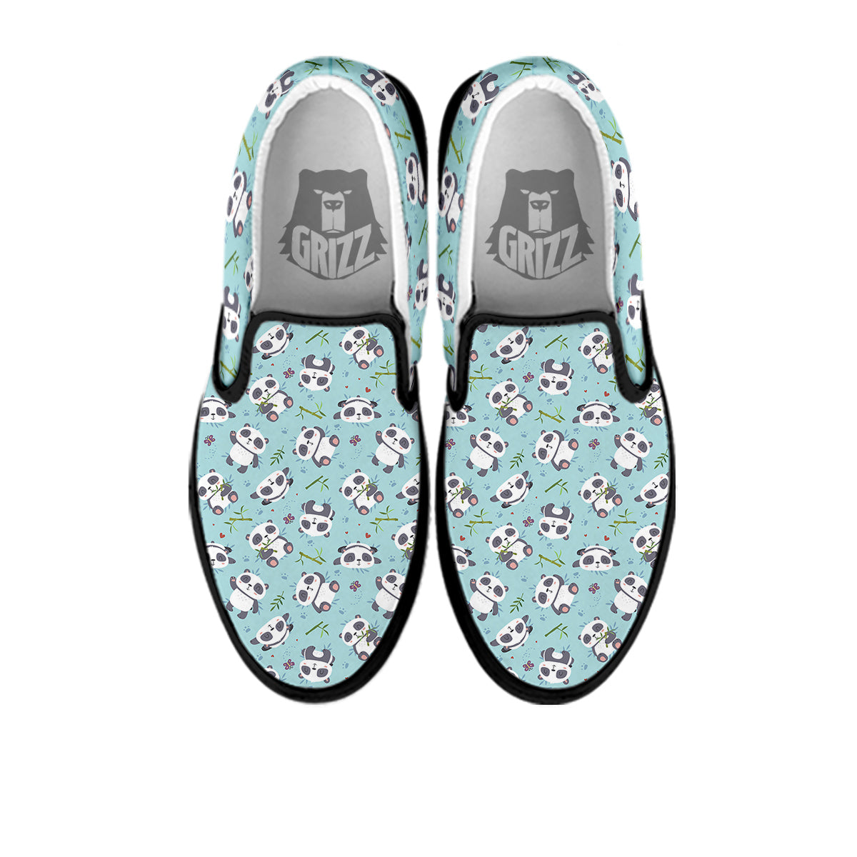 Bamboo And Cute Panda Print Pattern Black Slip On Shoes