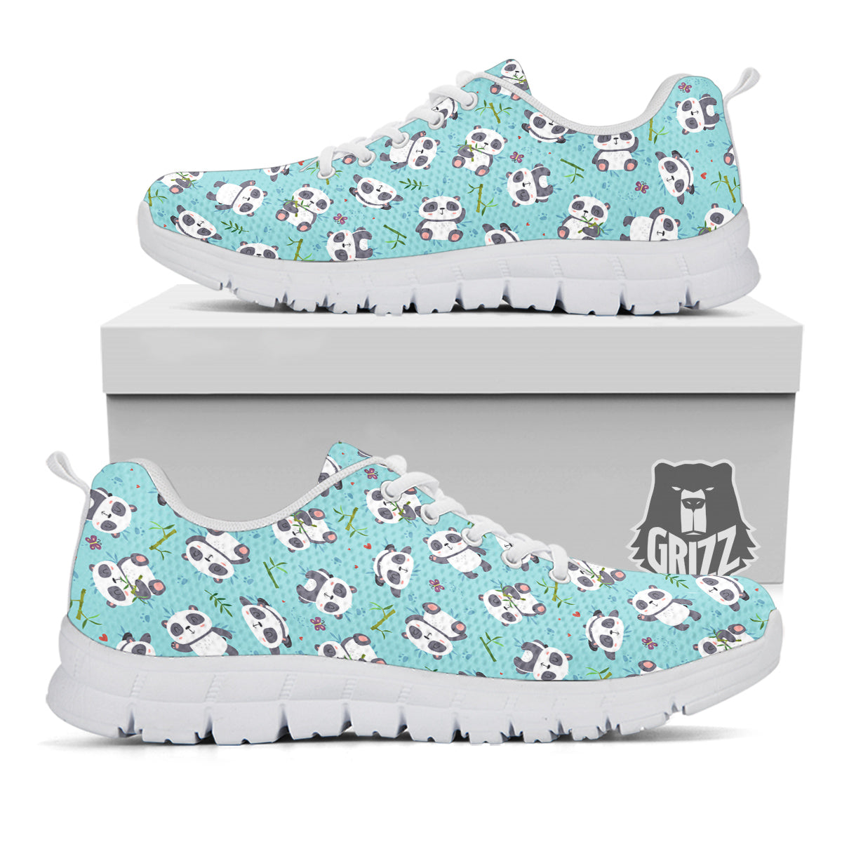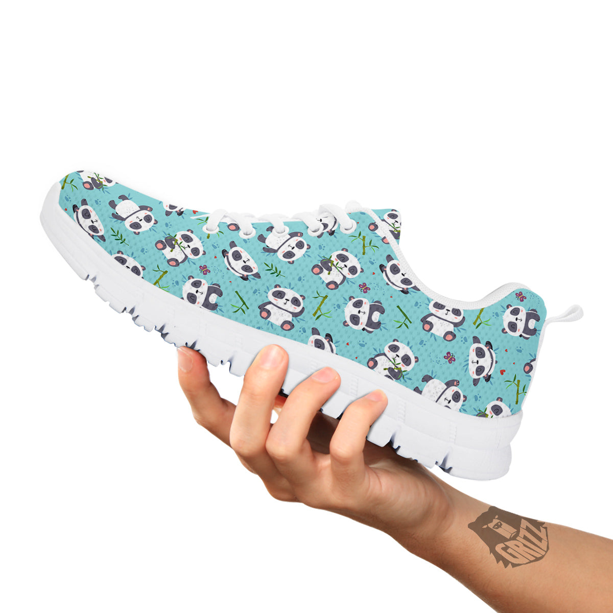 Bamboo And Cute Panda Print Pattern White Sneaker