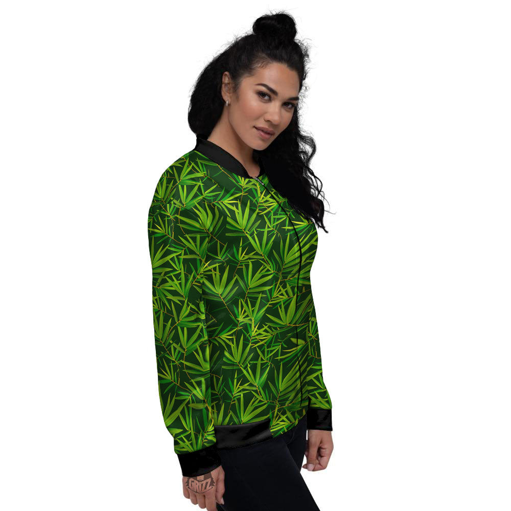 Bamboo Leaf Green Print Pattern Women's Bomber Jacket
