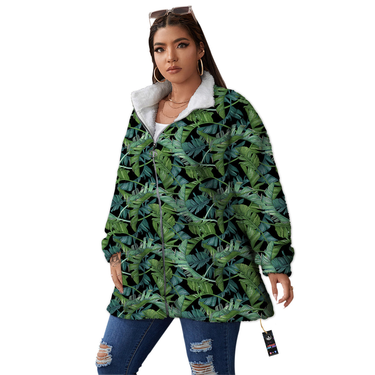 Banana Leaf Print Pattern Women's Sherpa Jacket