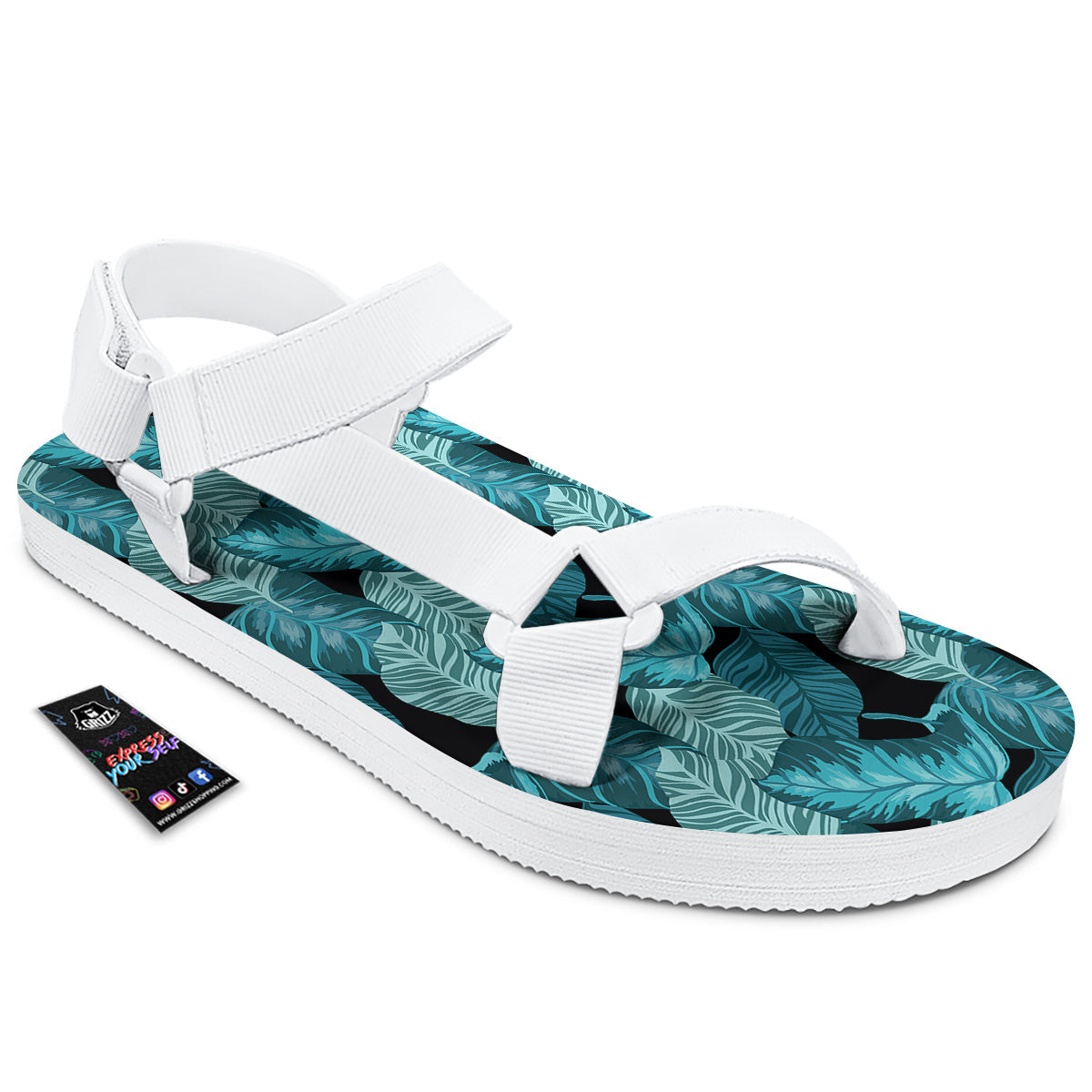 Banana Leaf Turquoise Print Pattern White Open Toe Sandals