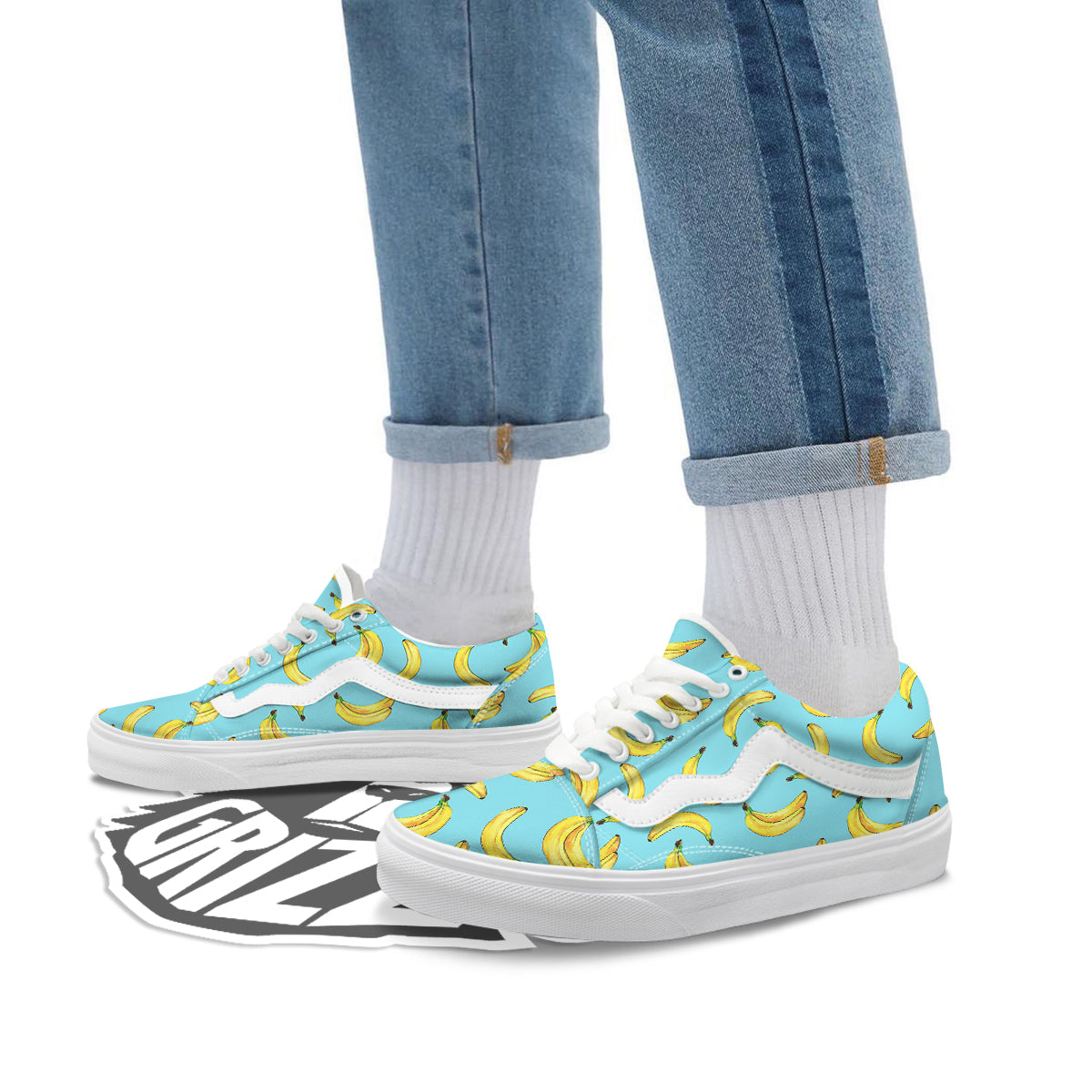 Banana Watercolor Print Pattern Skate Shoes