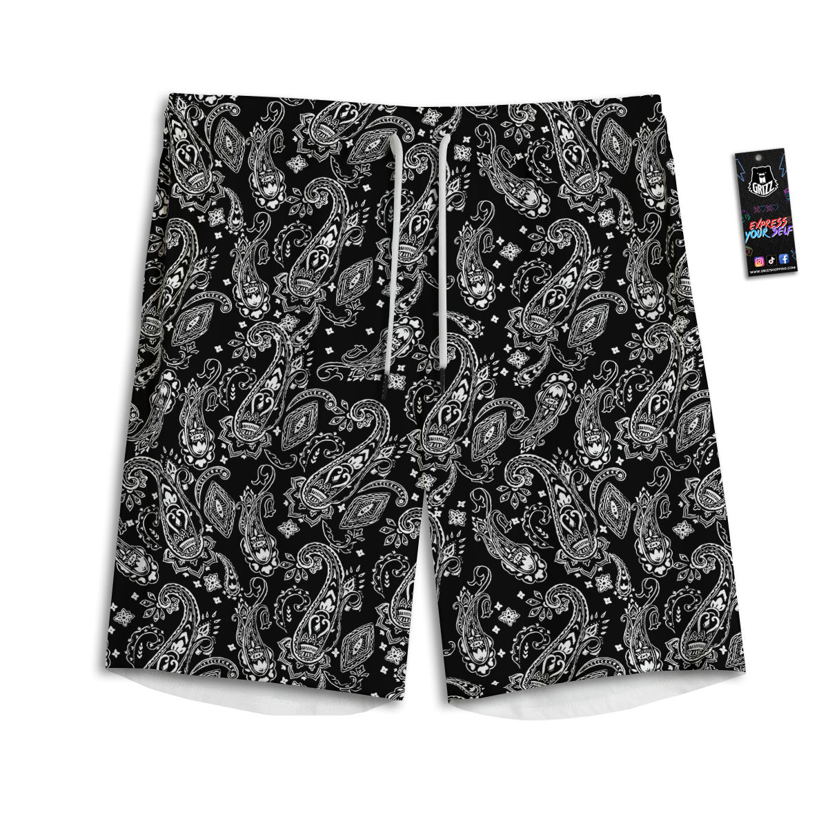 Bandana Black Paisley Print Pattern Men's Athletic Shorts