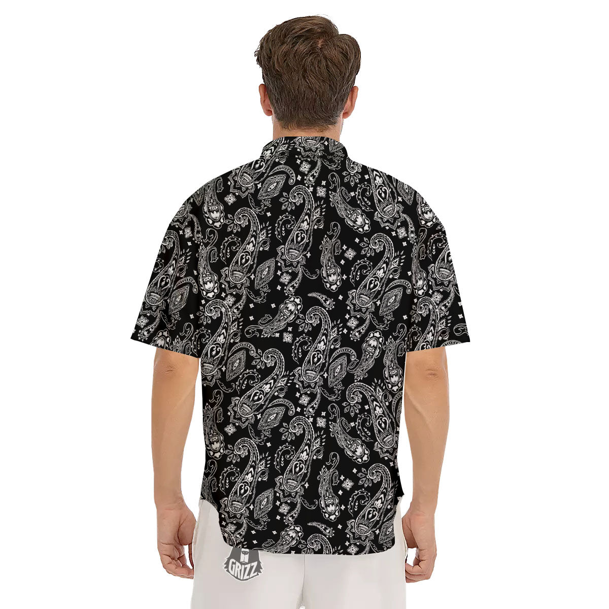 Bandana Black Paisley Print Pattern Men's Short Sleeve Shirts