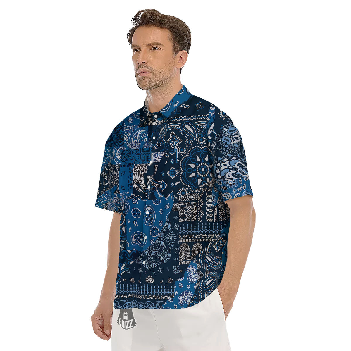 Bandana Blue Paisley Print Pattern Men's Short Sleeve Shirts