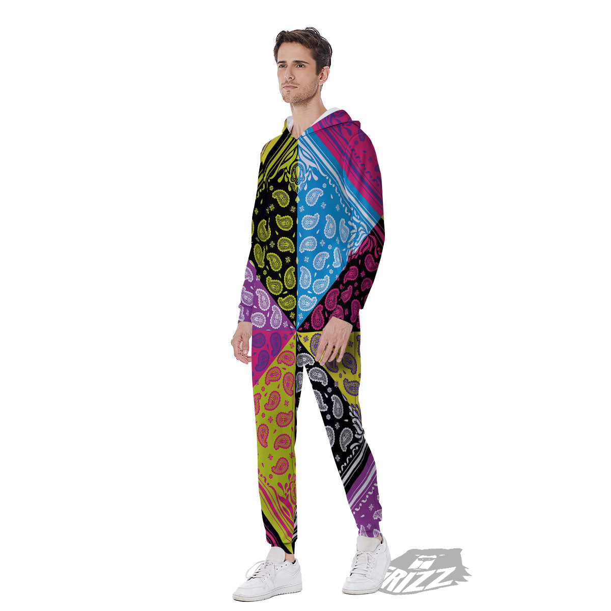 Bandana Paisley Colorful Square Print Men's Jumpsuit