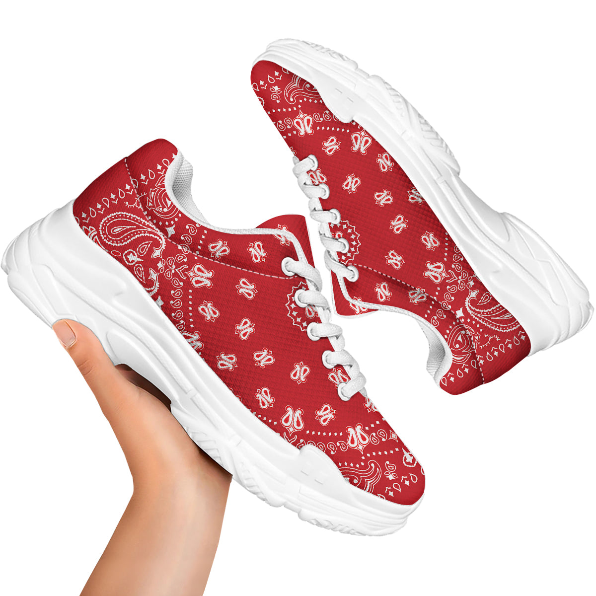 Looking for unique chunky shoes? Check out our Bandana Red Paisley Print White Chunky Shoes at Grizzshopping. Our chunky shoes are handcrafted to the highest quality standards that custom made for you