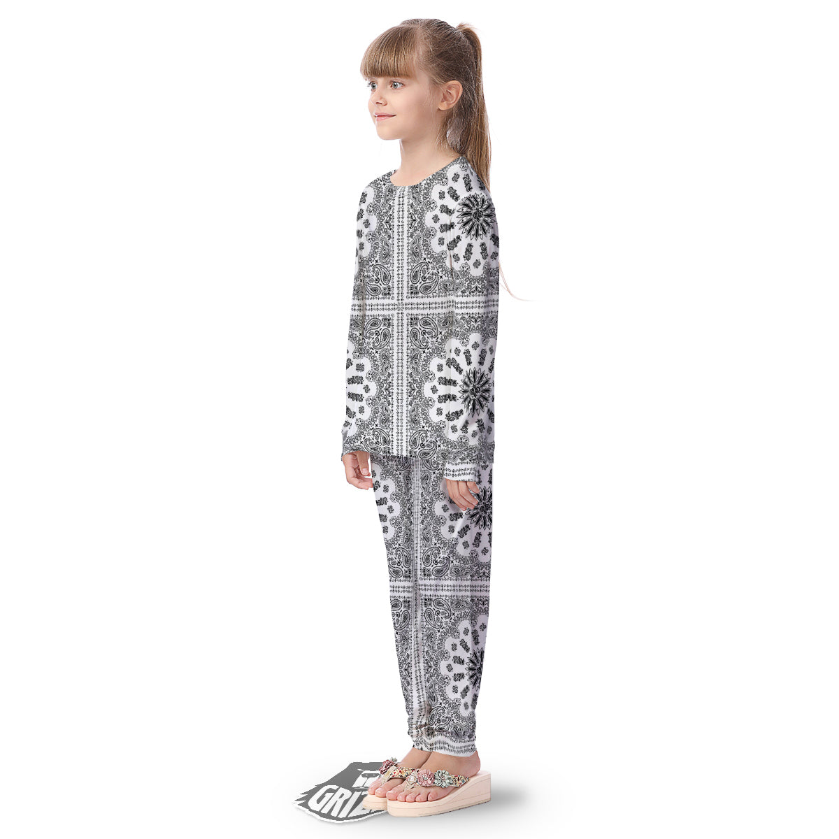 Bandana White And Black Paisley Print Pattern Kid's Pajamas