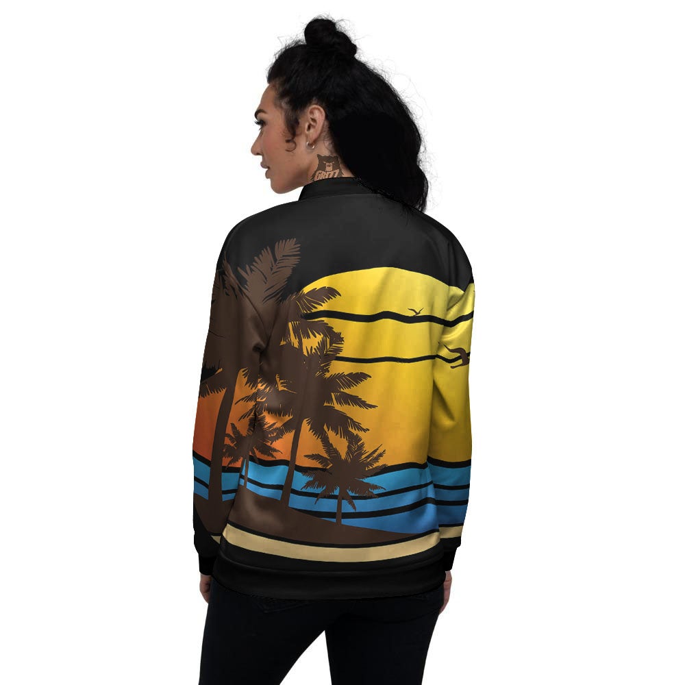 Beach Sunset Palm Tree Print Women's Bomber Jacket