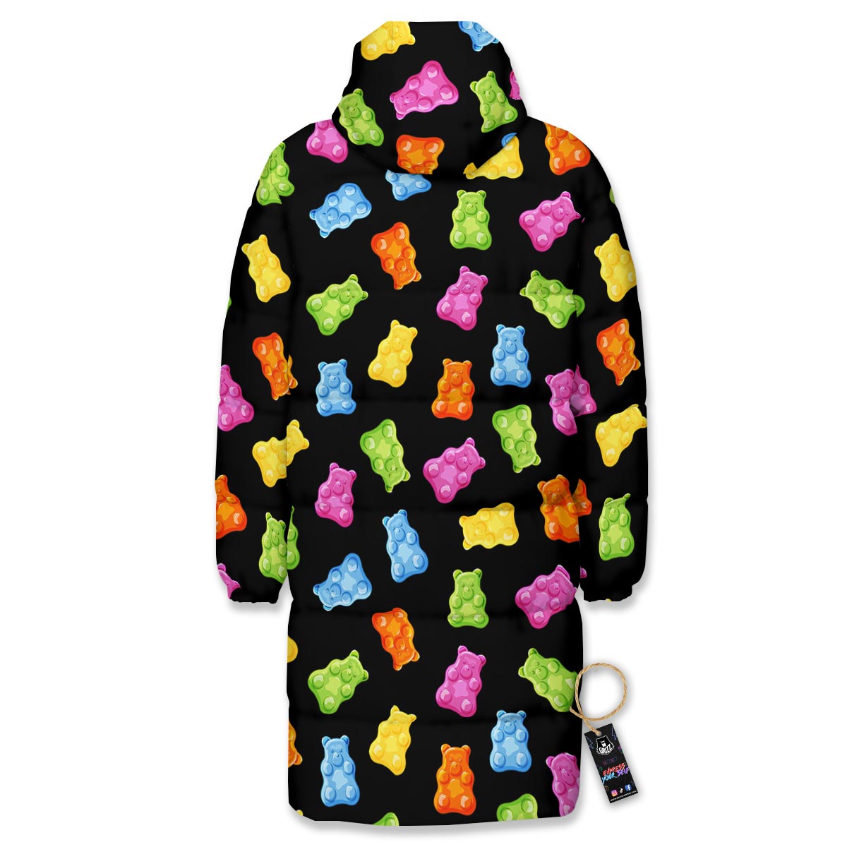 Bear Sweet Gummy Print Pattern Long Down Jacket