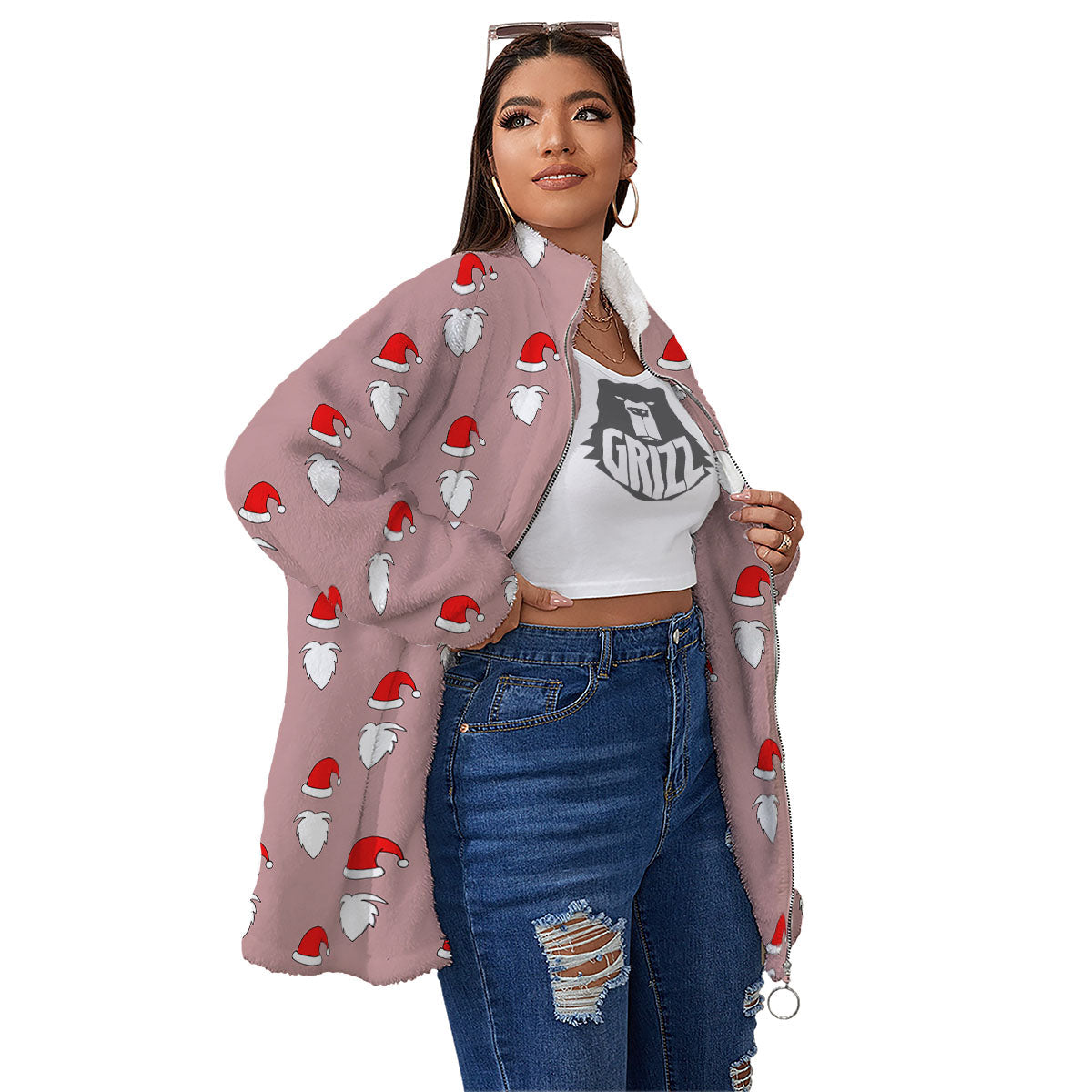 Beard Santa Claus Print Pattern Women's Sherpa Jacket