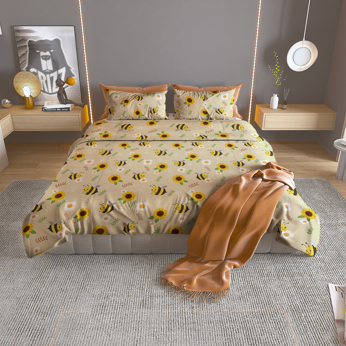 Bee Cute Cartoon Print Pattern Duvet Cover Bedding Set