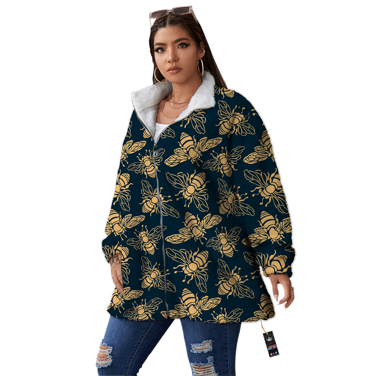 Bee Vintage Print Pattern Women's Sherpa Jacket