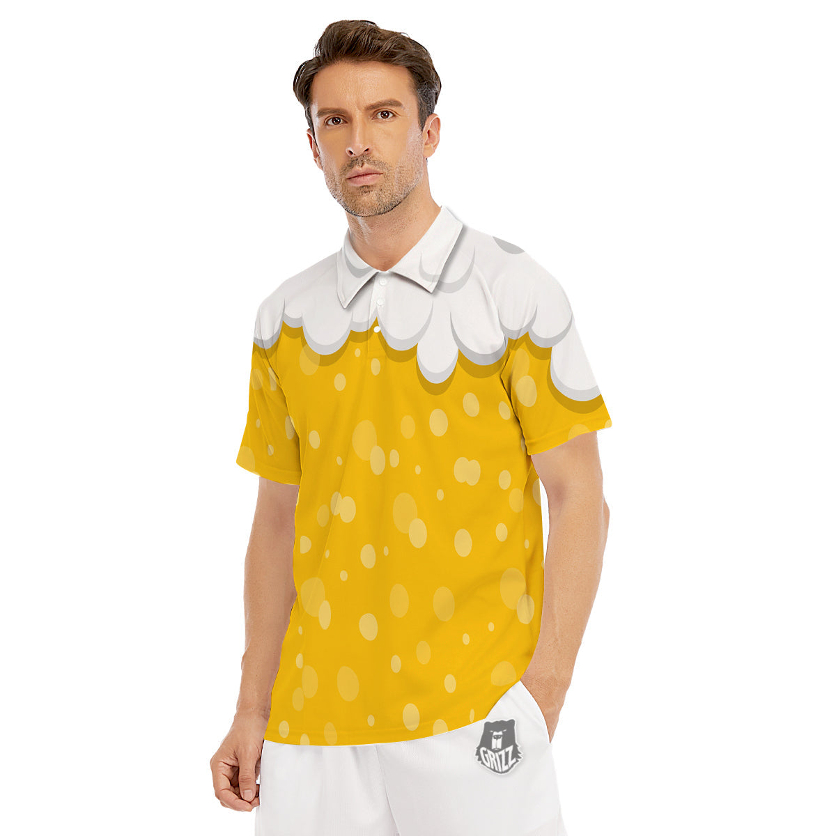Beer Foam And Bubbles Cartoon Print Men's Golf Shirts
