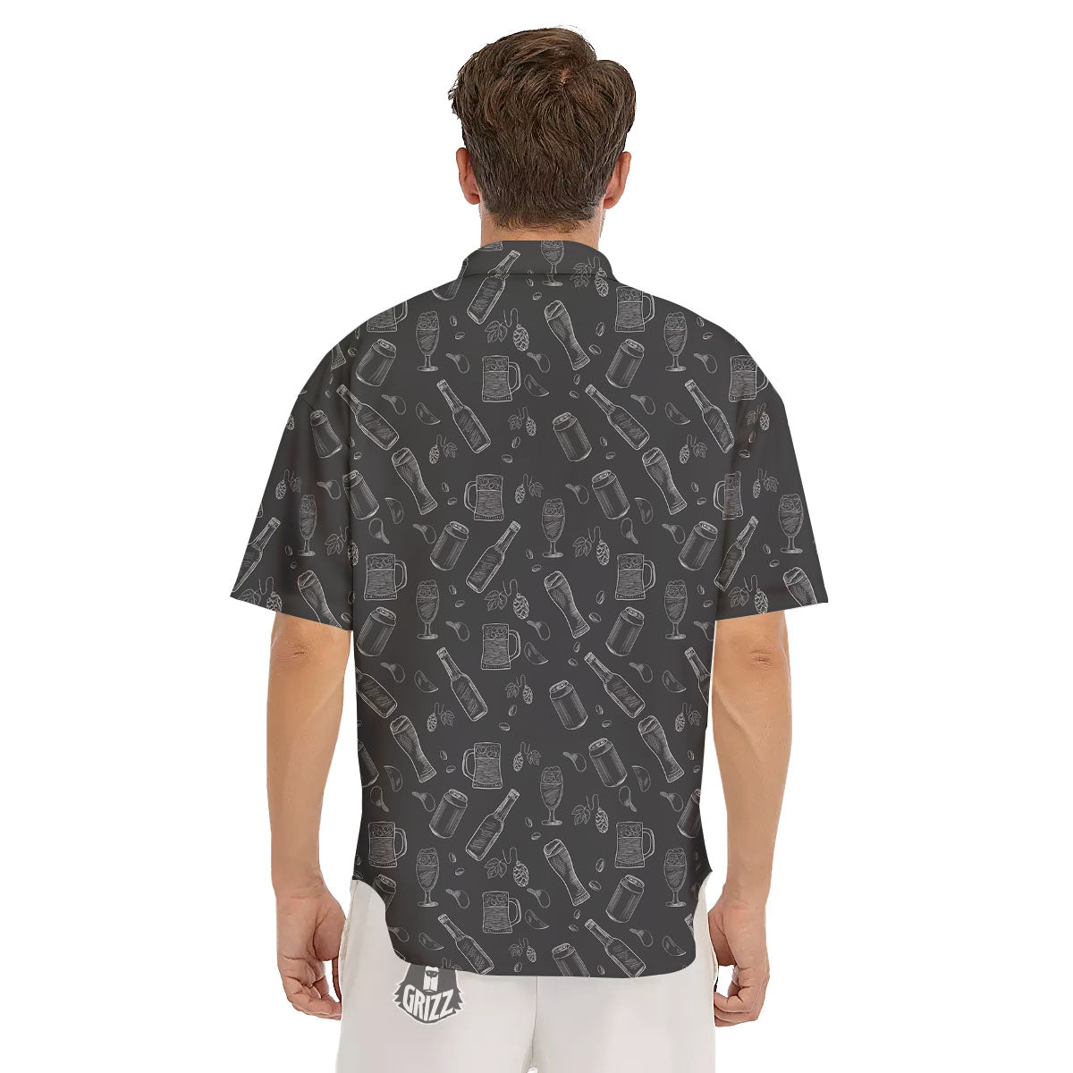 Beer White And Black Print Pattern Men's Short Sleeve Shirts