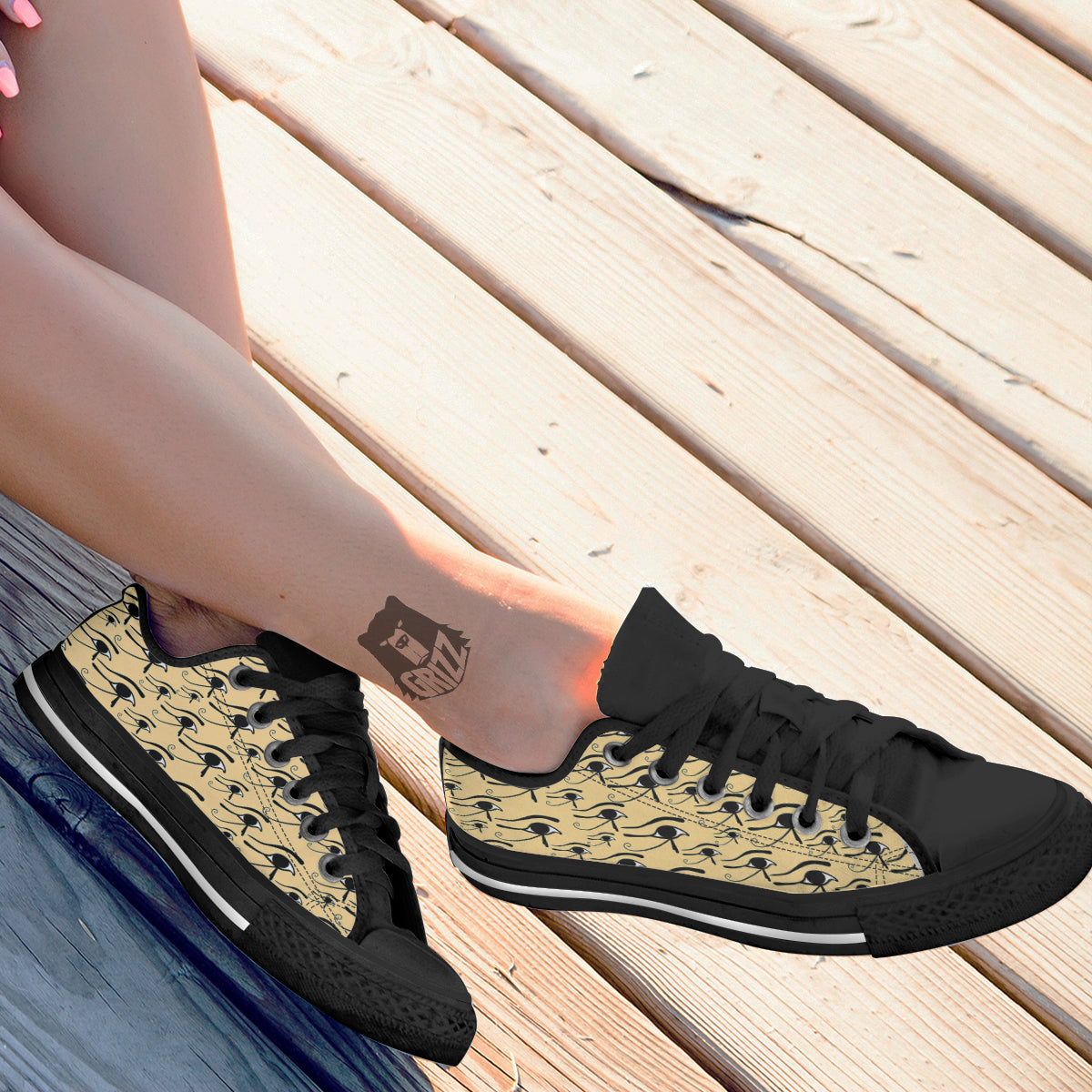 Beige Eye of Horus Print Pattern Black Low Top Shoes