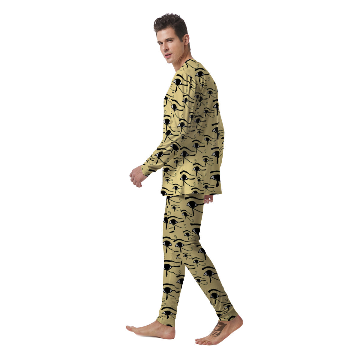 Beige Eye of Horus Print Pattern Men's Pajamas