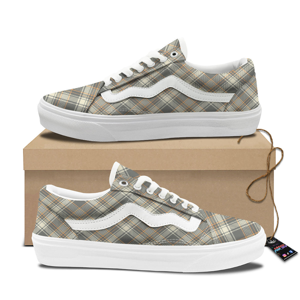 Beige Plaid And Grey Print Pattern Skate Shoes