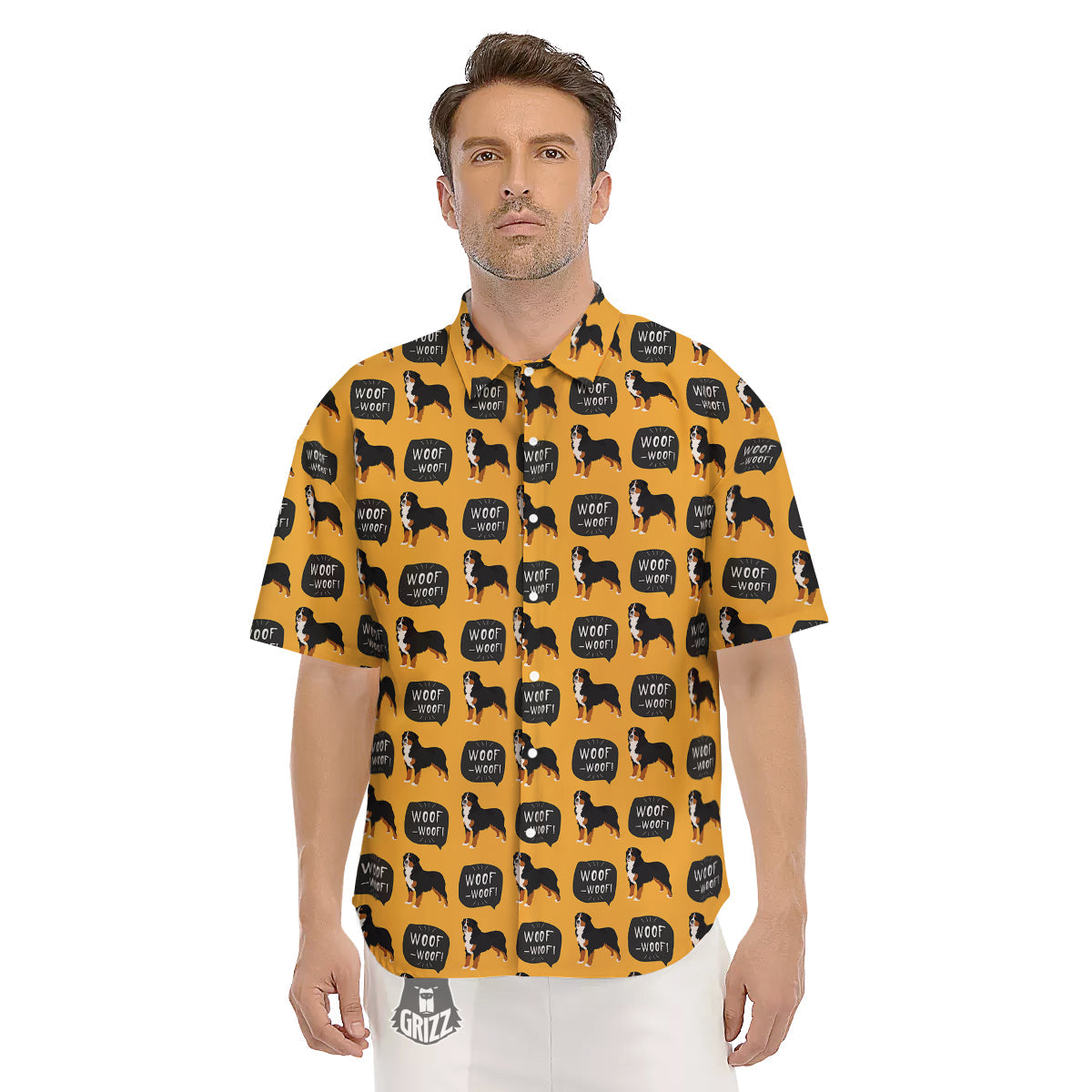 Bernese Yellow Woof Woof Print Pattern Men's Short Sleeve Shirts