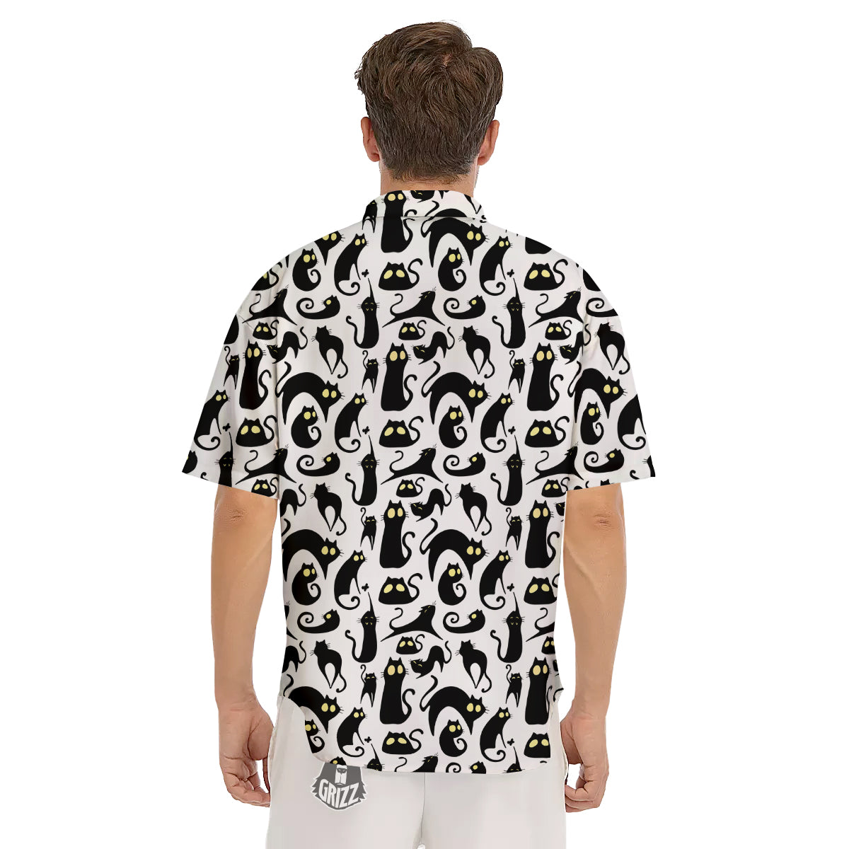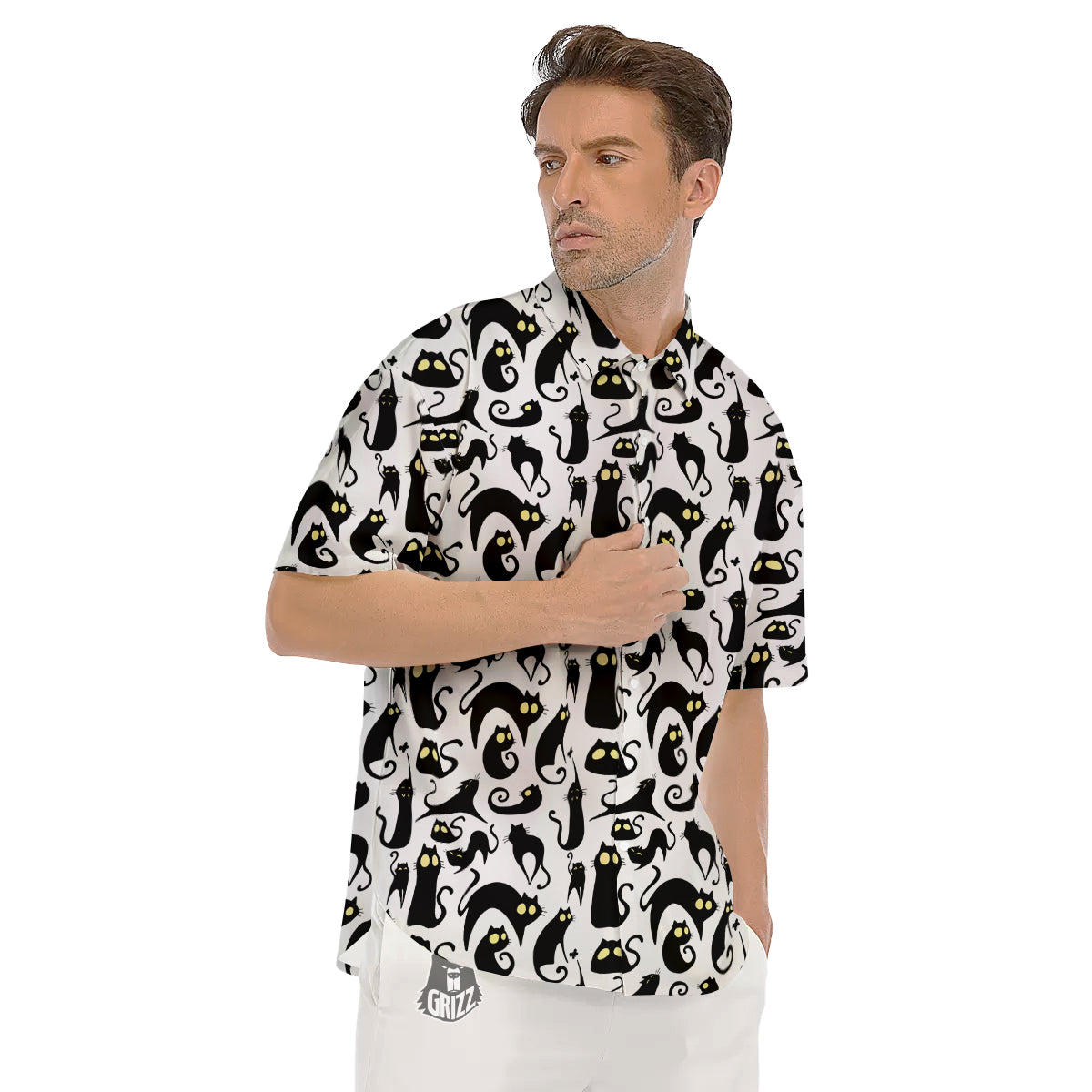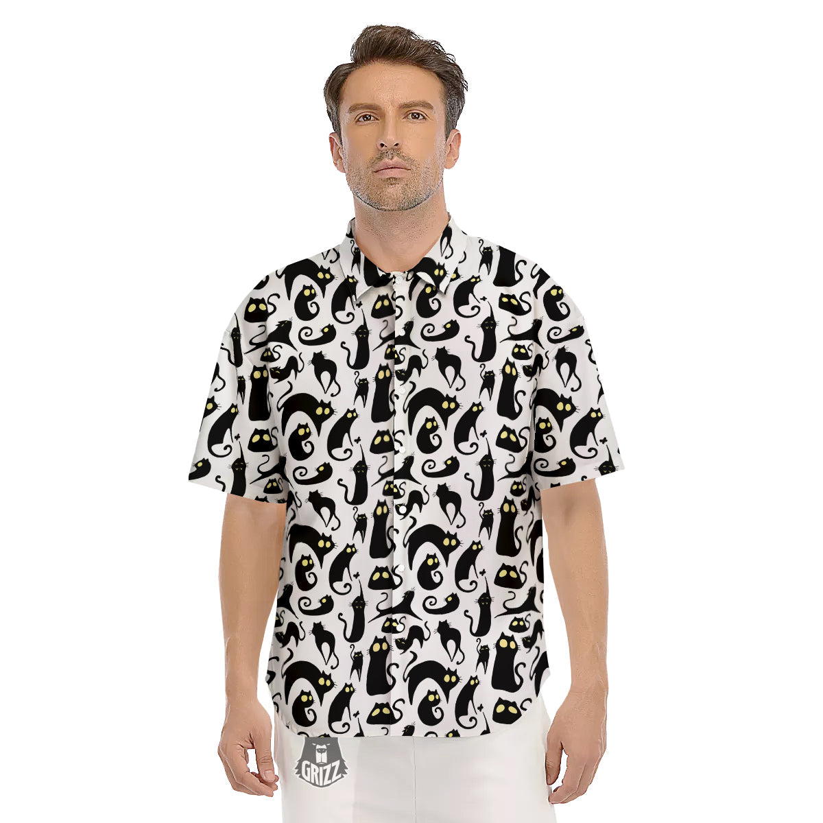 Big Eye Black Cat Halloween Print Pattern Men's Short Sleeve Shirts