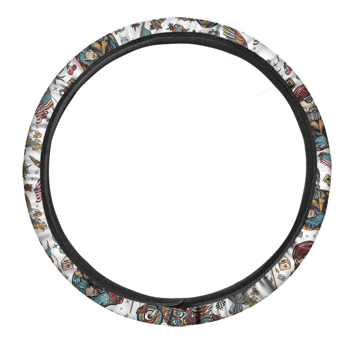 Bikers Old School Tattoo Print Pattern Car Steering Wheel Cover