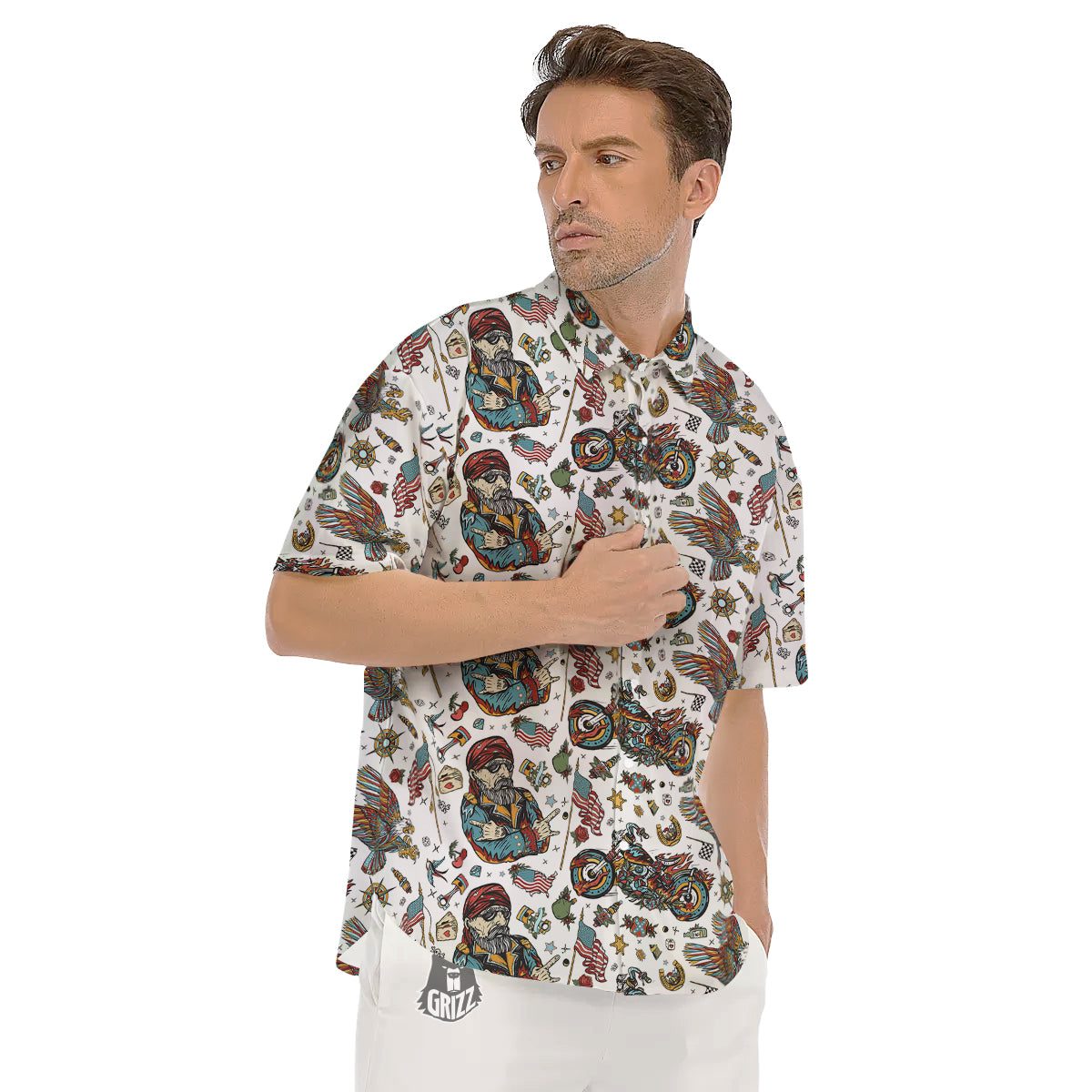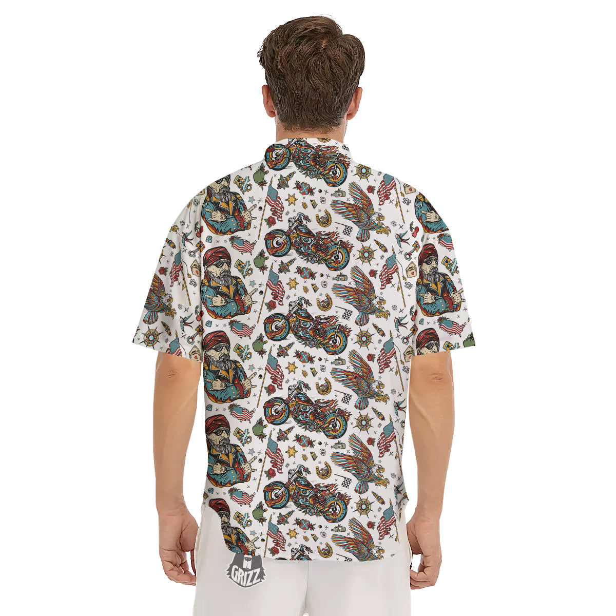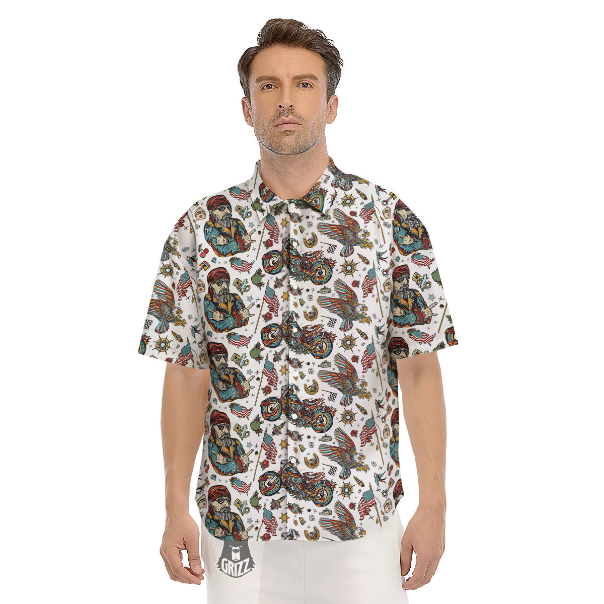 Bikers Old School Tattoo Print Pattern Men's Short Sleeve Shirts