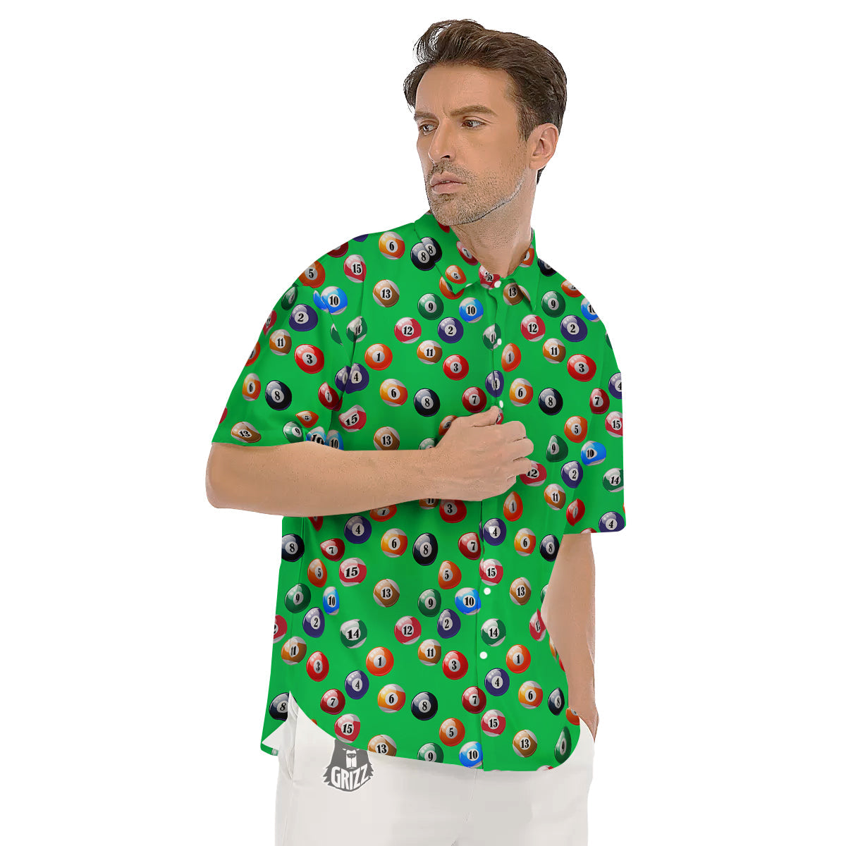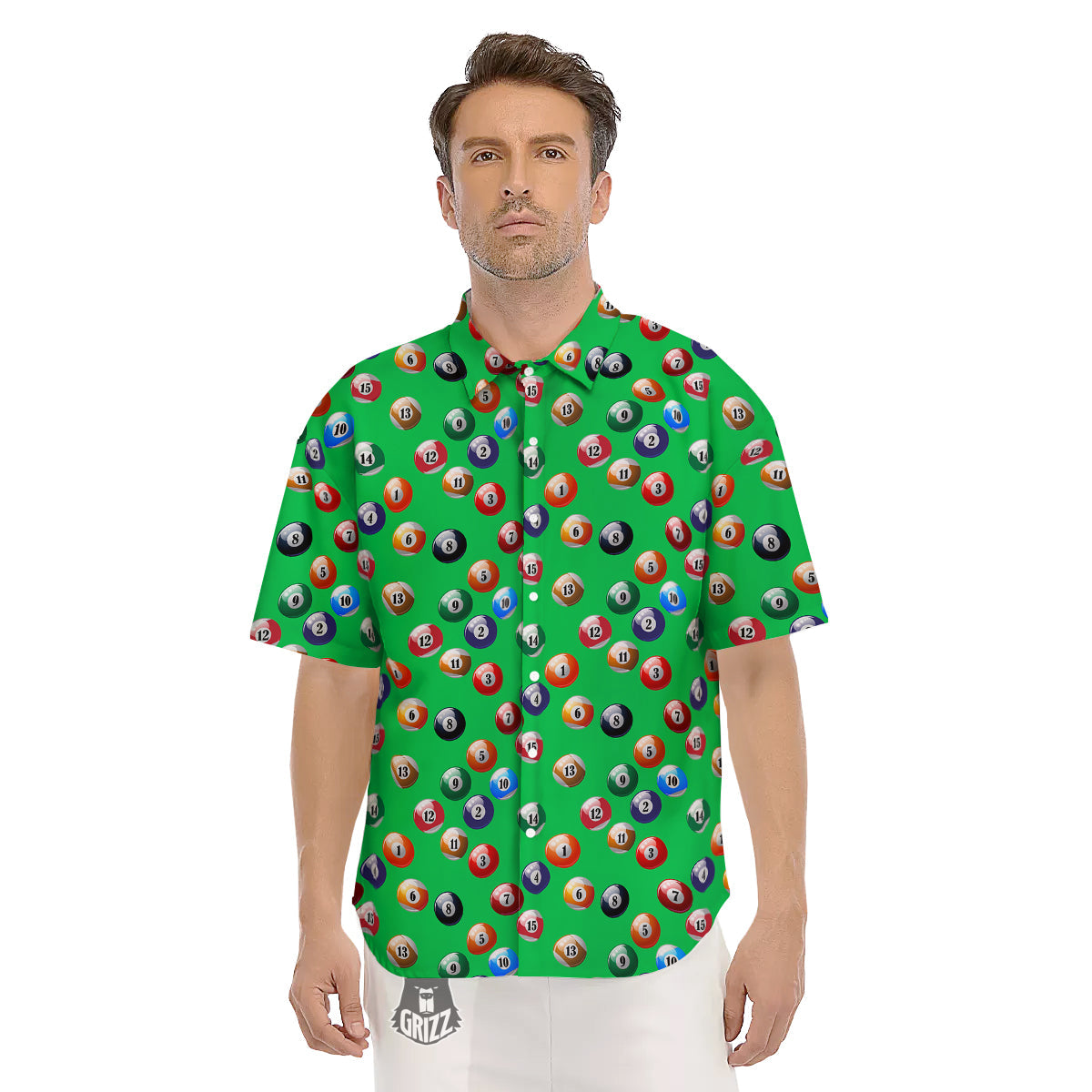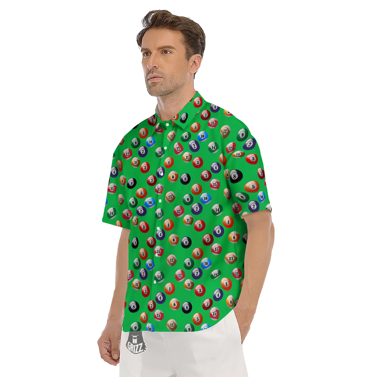 Billiard Ball Green Print Pattern Men's Short Sleeve Shirts