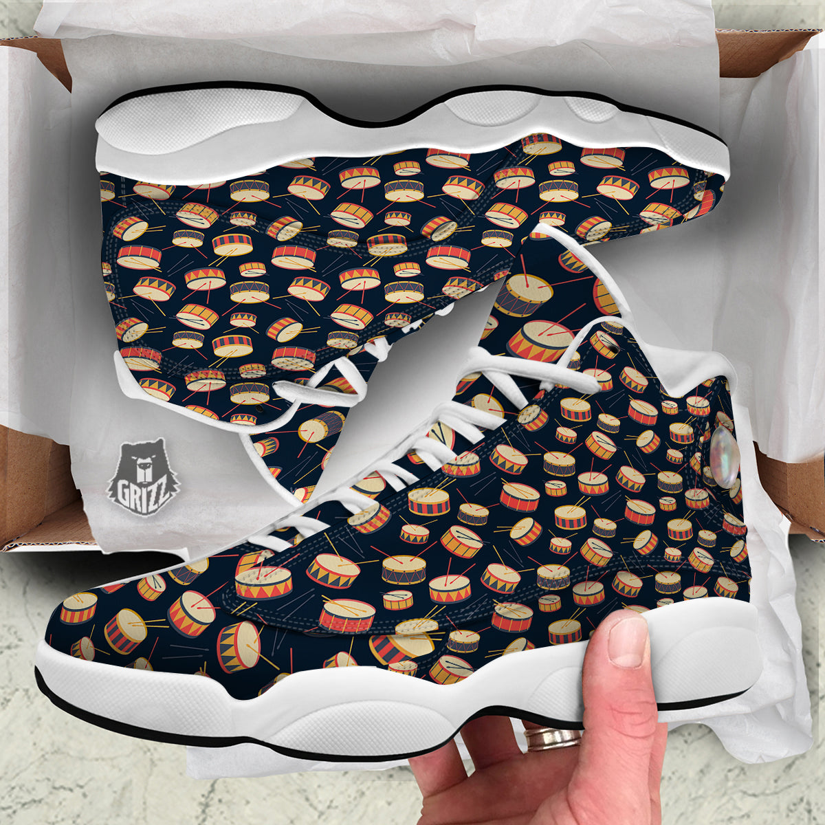Black And Beige Drum Print Pattern White Basketball Shoes