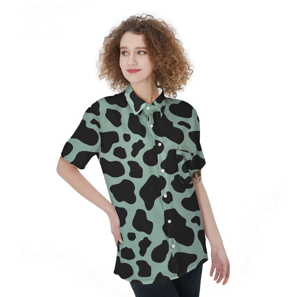 Looking for a unique women's short sleeve shirts? Check out our Black And Green Cow Print Women's Short Sleeve Shirts at Grizzshopping. Our women's short sleeve shirts are handcrafted to the highest quality standards that custom made for you