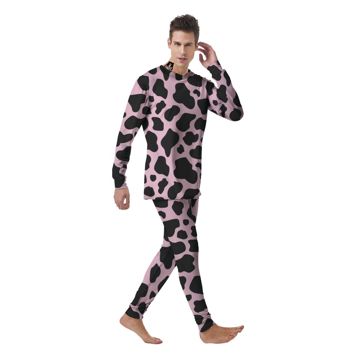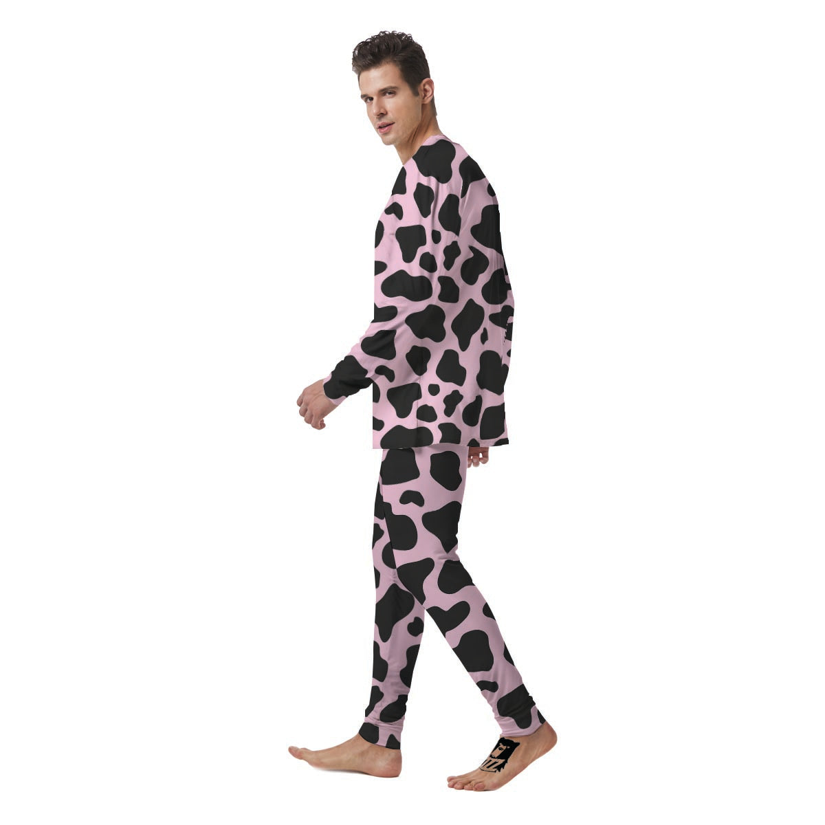 Black And Pink Cow Print Men's Pajamas