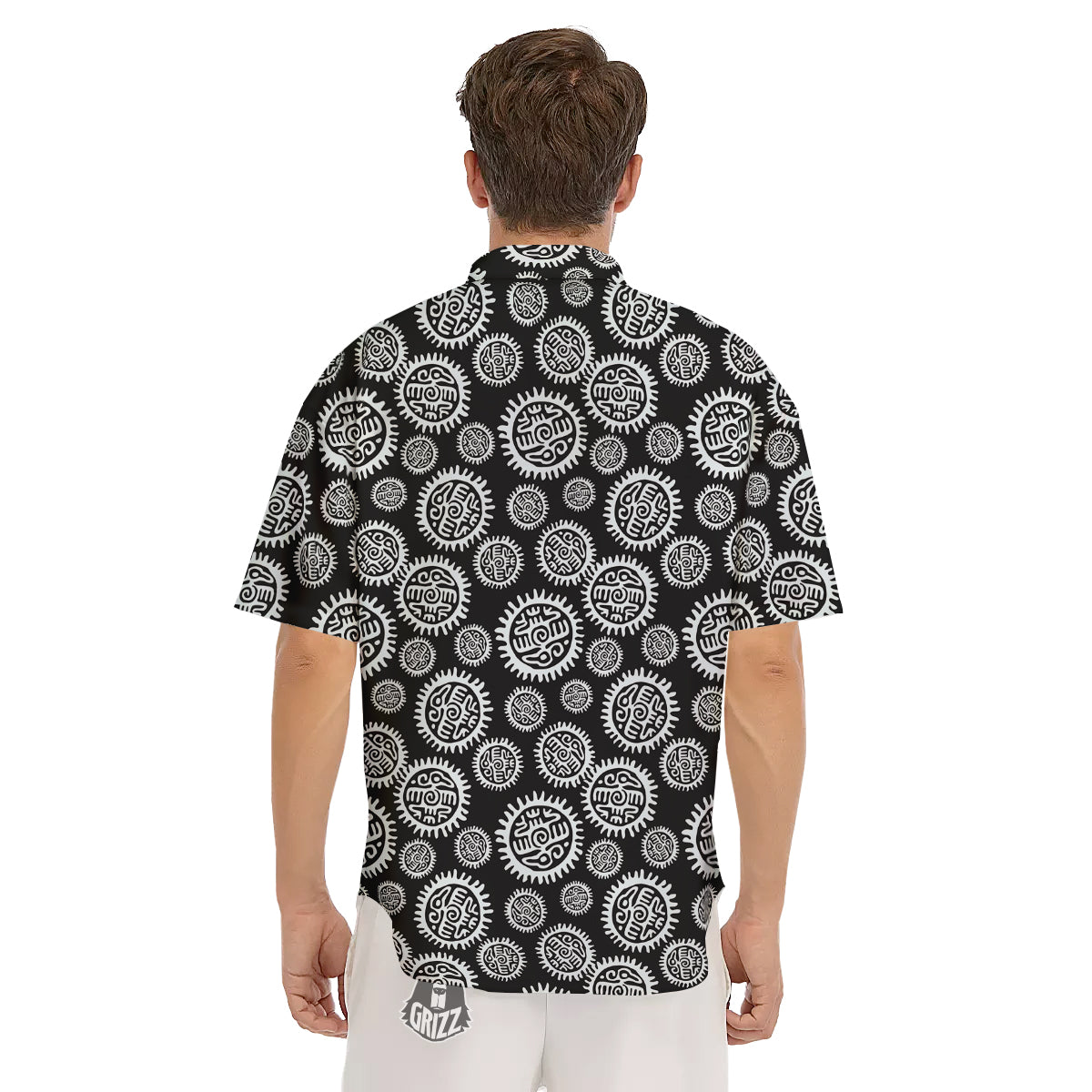 Black And White Aztec Mayan Eagle Print Pattern Men's Short Sleeve Shirts