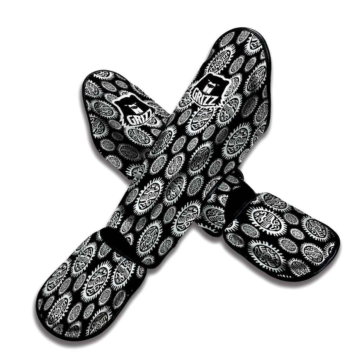 Black And White Aztec Mayan Eagle Print Pattern Muay Thai Shin Guards