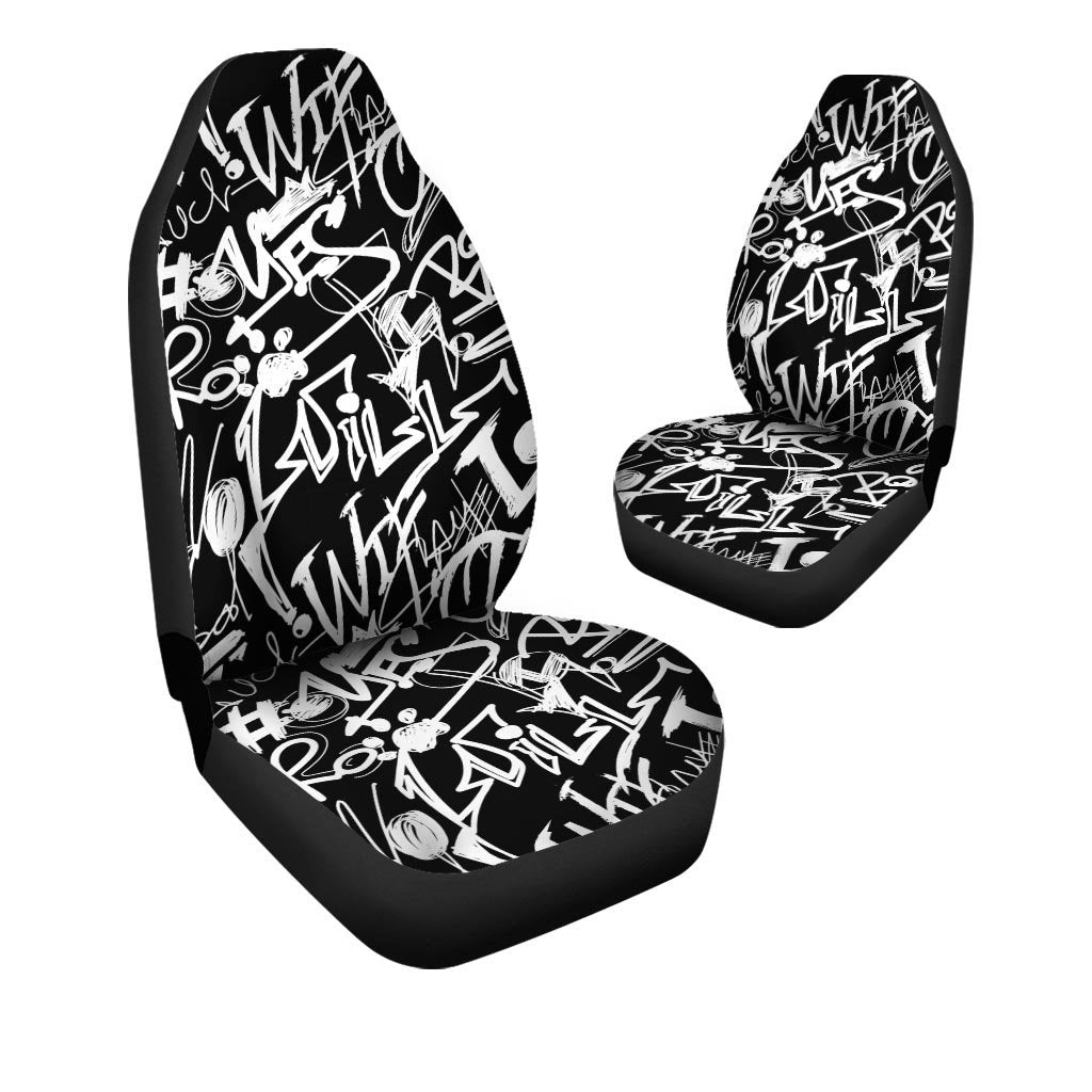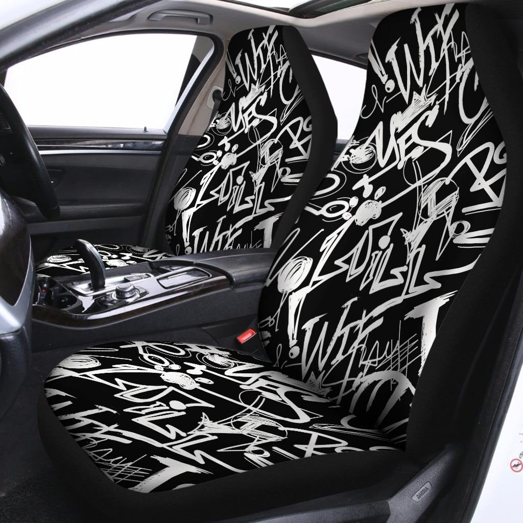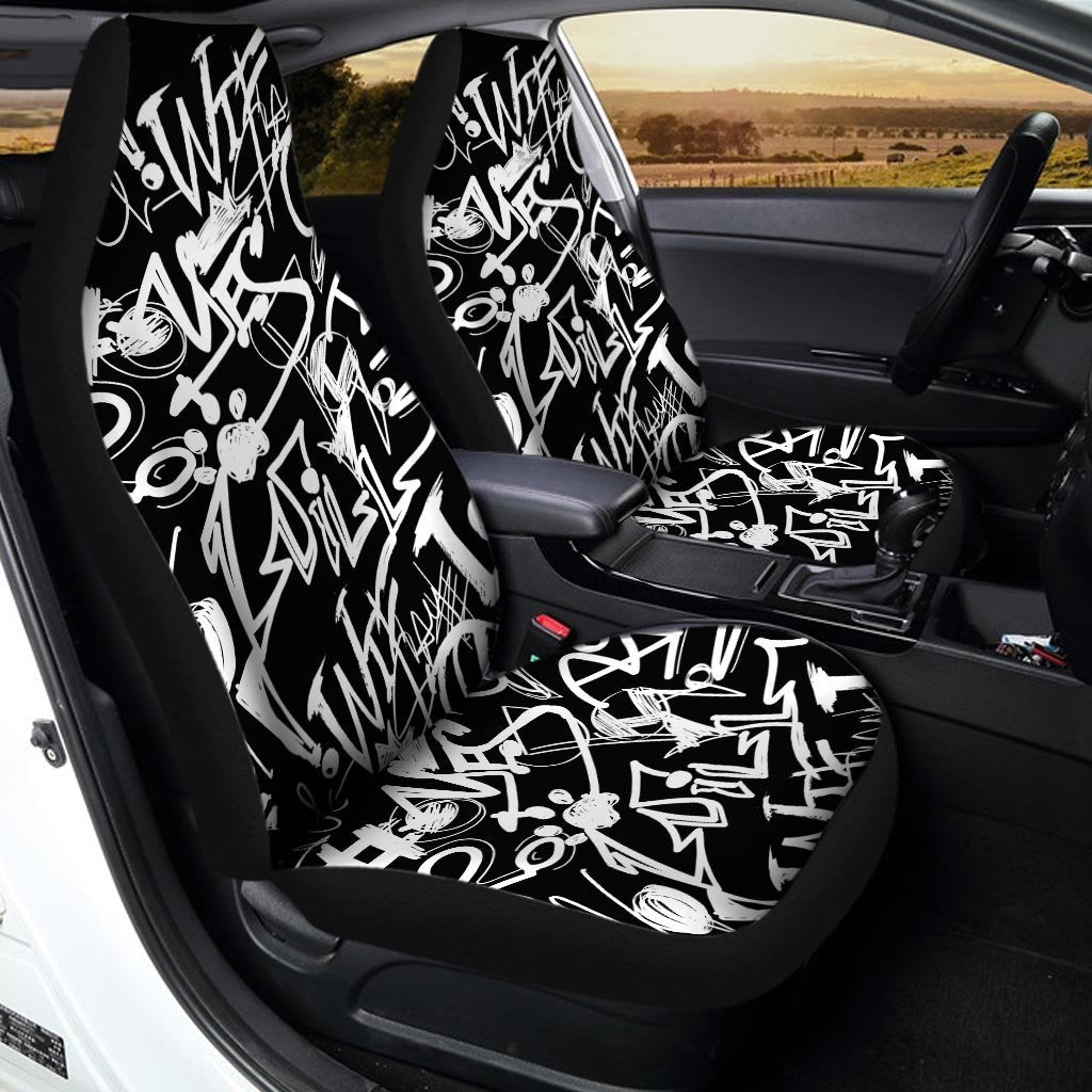 Black And White Graffiti Doodle Text Print Car Seat Covers