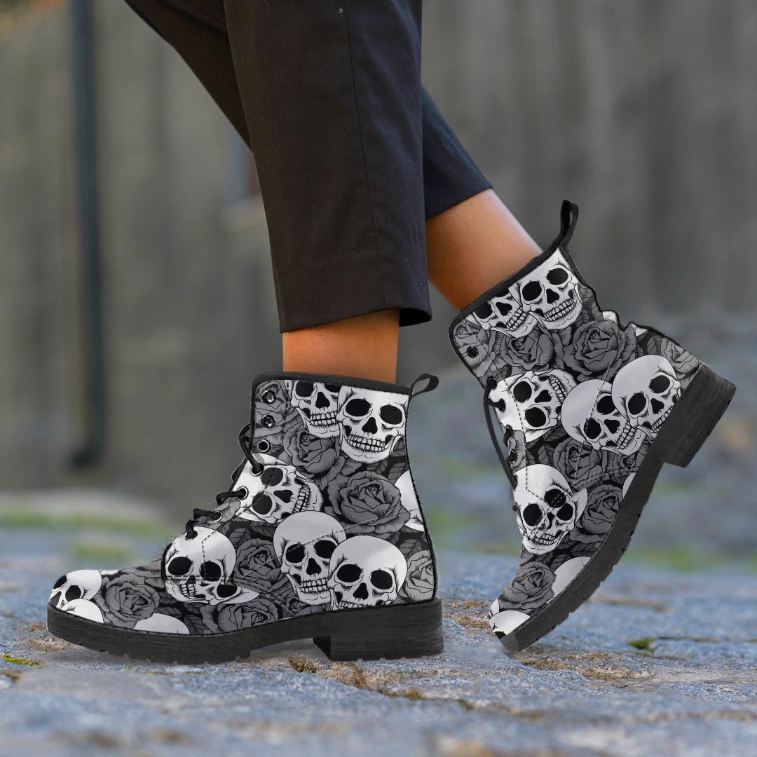 Looking for a unique Boots? Check out our Black And White Rose Floral Skull Men's Boots at Grizzshopping. Our Boots are handcrafted to the highest quality standards that custom made for you