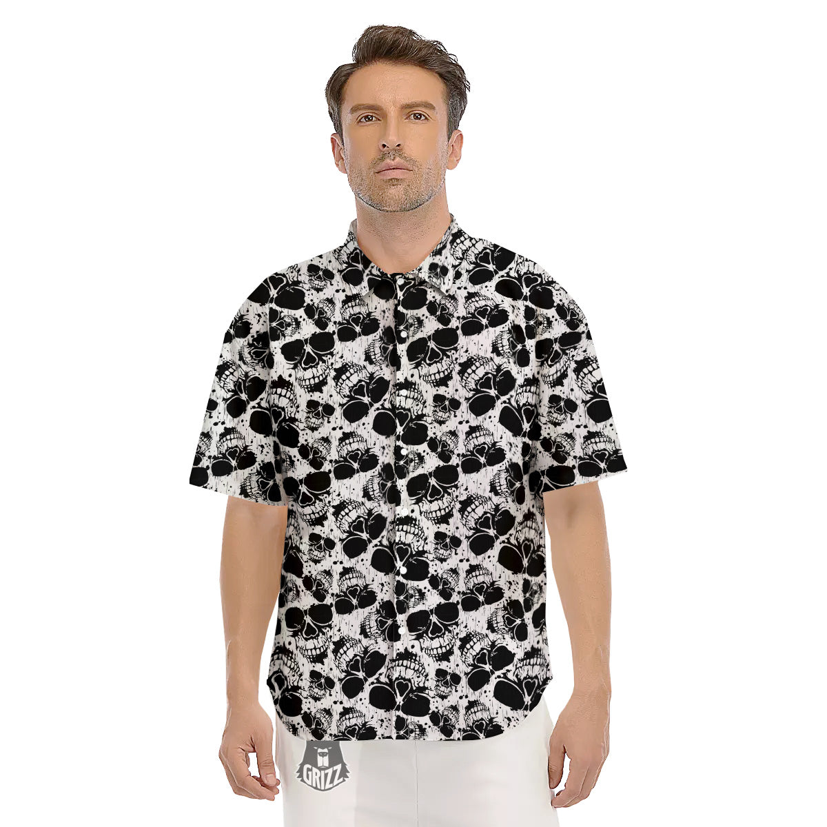 Looking for a unique Short Sleeve Shirt? Check out our Black And White Skull Grunge Print Pattern Men's Short Sleeve Shirts at Grizzshopping. Our Short Sleeve Shirt are handcrafted to the highest quality standards that custom made for you