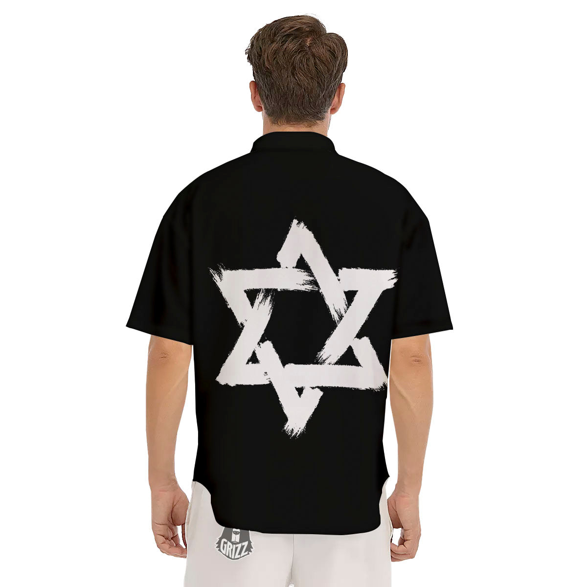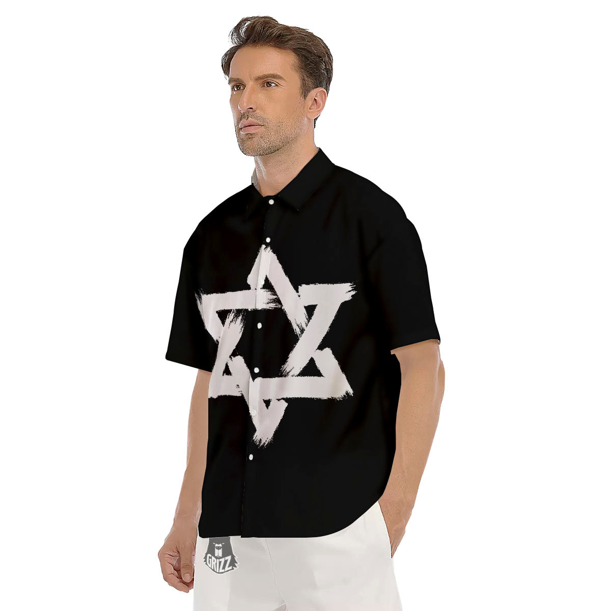 Black And White Star of David Print Men's Short Sleeve Shirts