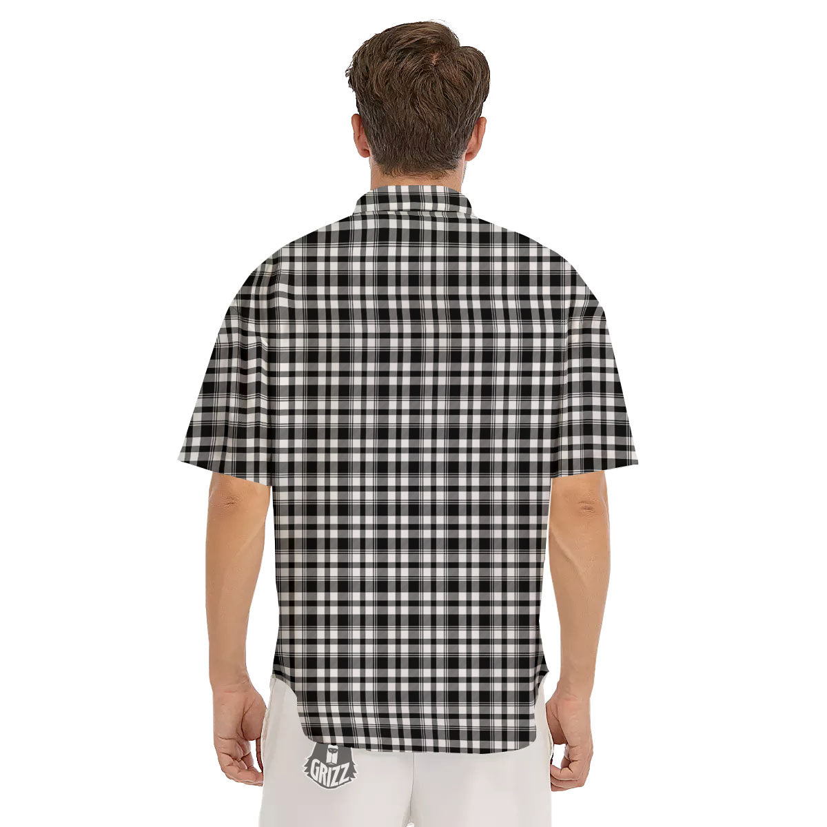 Black And White Tartan Print Pattern Men's Short Sleeve Shirts