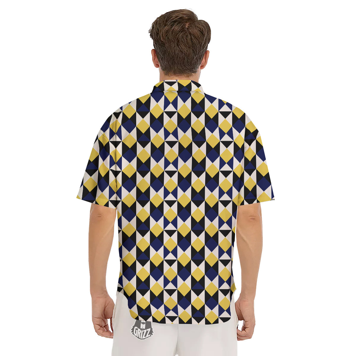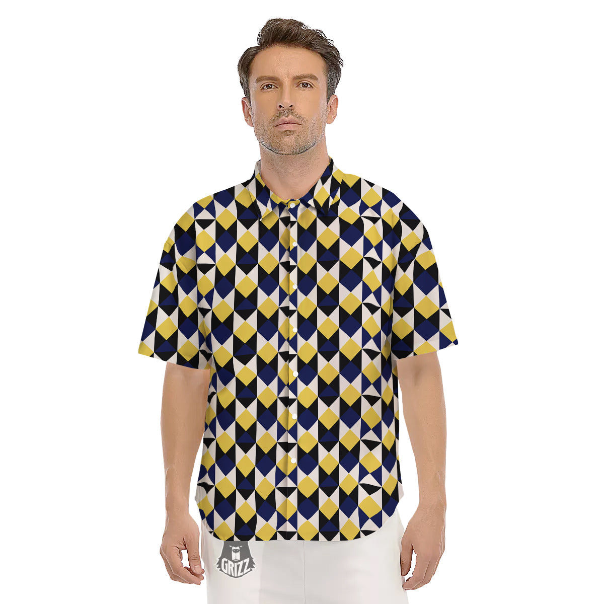 Black Argyle And Blue Yellow Print Pattern Men's Short Sleeve Shirts